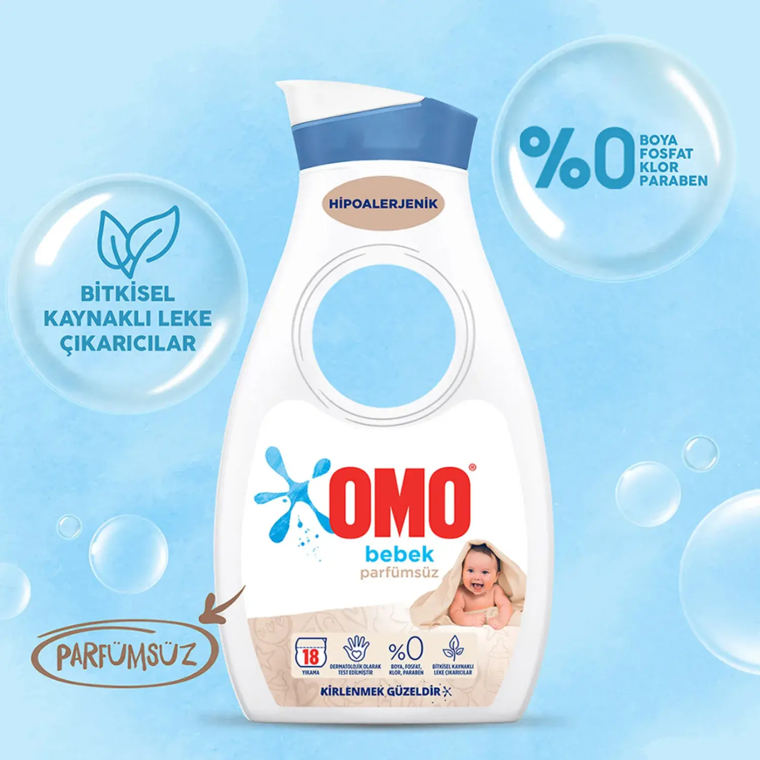 Omo Bebek Parfümsüz Sıvı Deterjan, boya, fosfat, klor ve paraben içermeyen formülü ile bebeğinizin çamaşırları için idealdir. Hipoalerjenik formülü sayesinde alerjik bünyelere sahip kişilerce de kullanılabilir. Bebek ve çocukların kullandığı narin çamaşırlar, Omo Bebek Parfümsüz ile kolaylıkla temizlenir.
