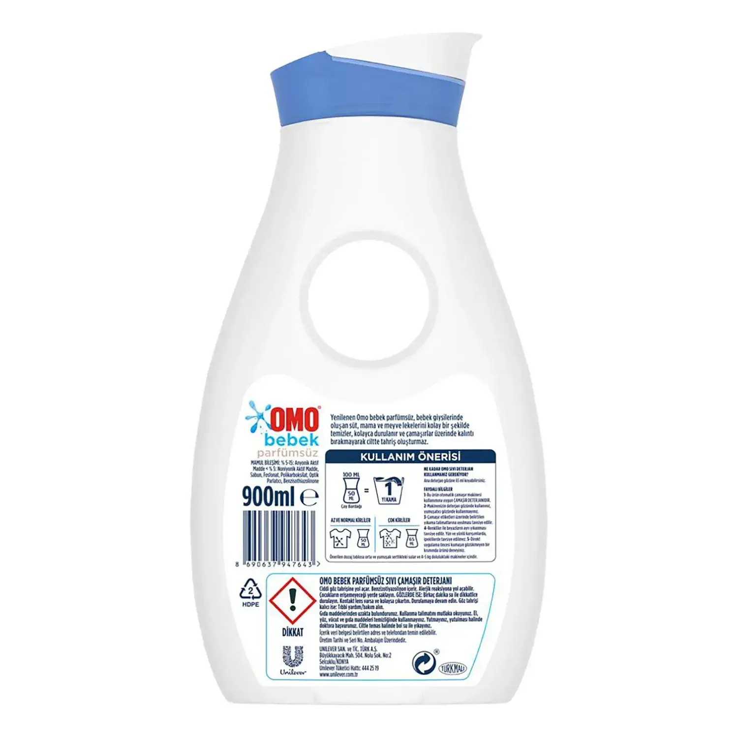 Omo Bebek Parfümsüz Sıvı Deterjan kapak yardımıyla çamaşır makinesinin deterjan gözüne koyularak hipoalerjenik yumuşatıcılarla beraber kullanılabilir. Siz de Omo Bebek Parfümsüz ile tanışın, bebeğinizin çamaşırlarına sizin kadar özen gösteren temizleyiciyle, lekesiz ve hassas temizliğin konforunu yaşayın.