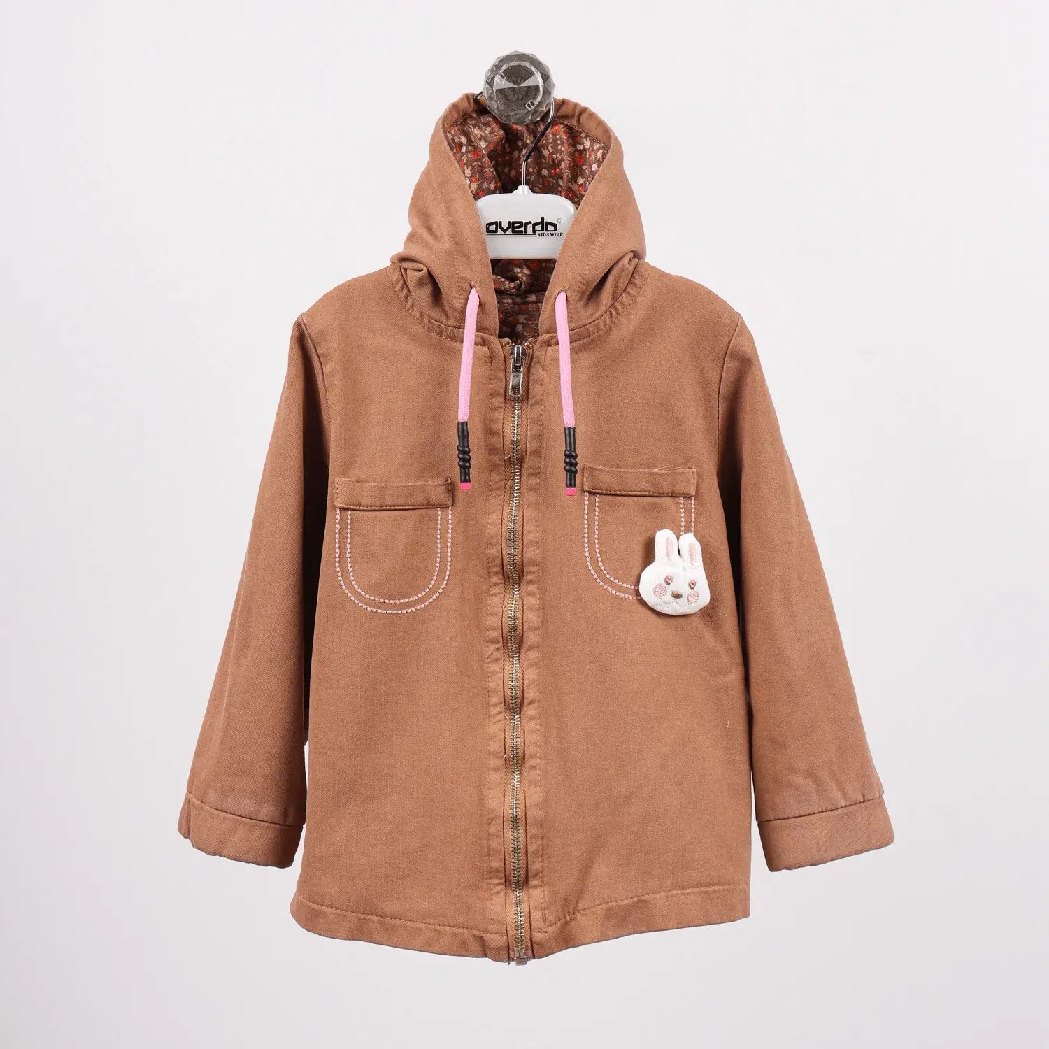 Overdo Ceket Kapüşonlu Kedili Kiremit