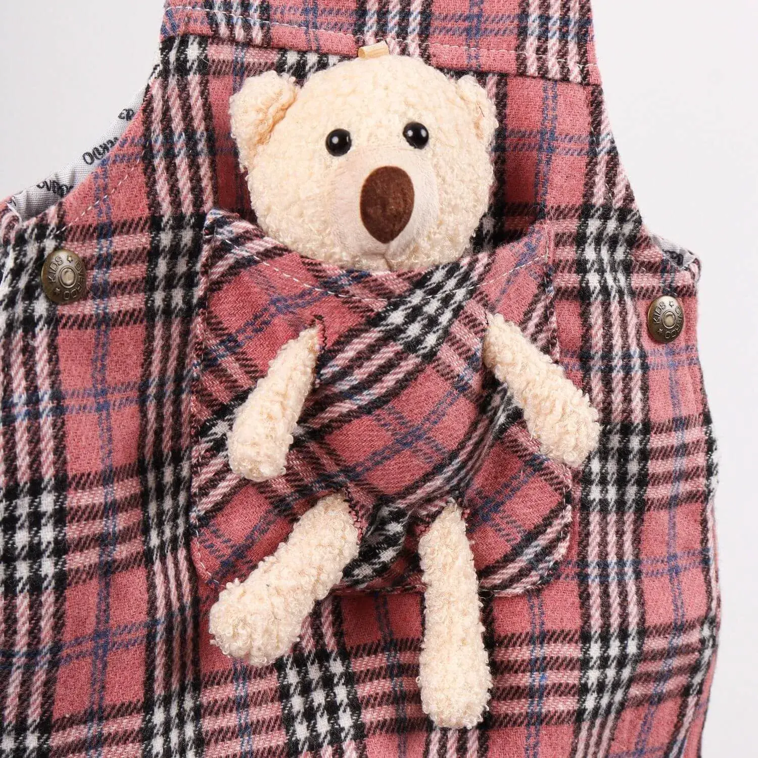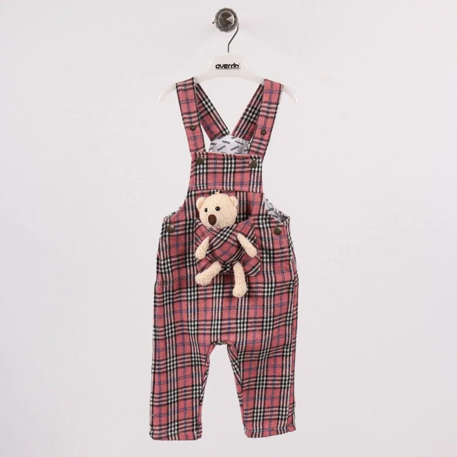 Overdo Salopet Ayıcıklı Ekoseli Pembe