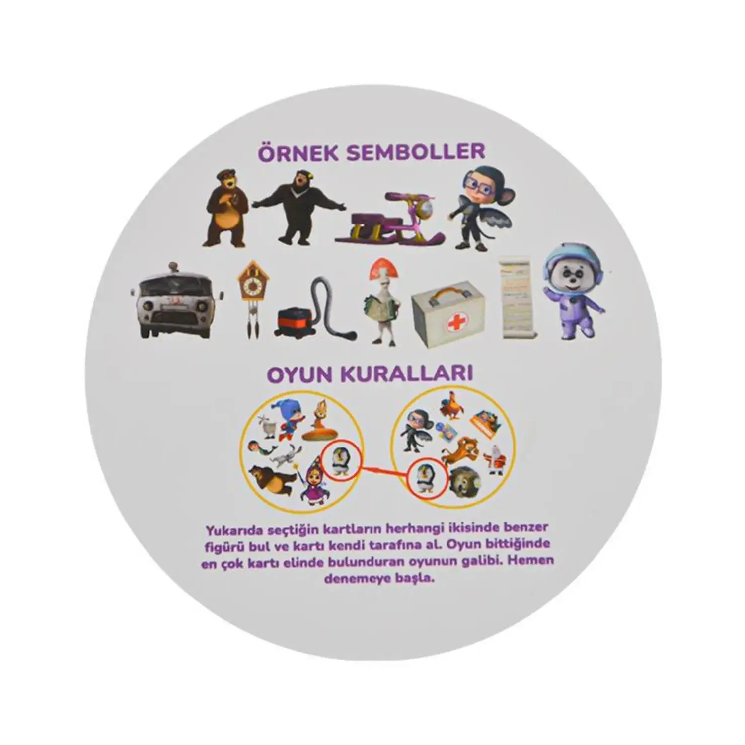- Oyuncular, açılan kartların içerdiği resimler arasında eşleşen resmi bulmaya çalışır. Açılan kartlar arasında ilk eşleşen resmi bulan ortadaki kartları alır. En çok kart biriktiren oyunu kazanır.
