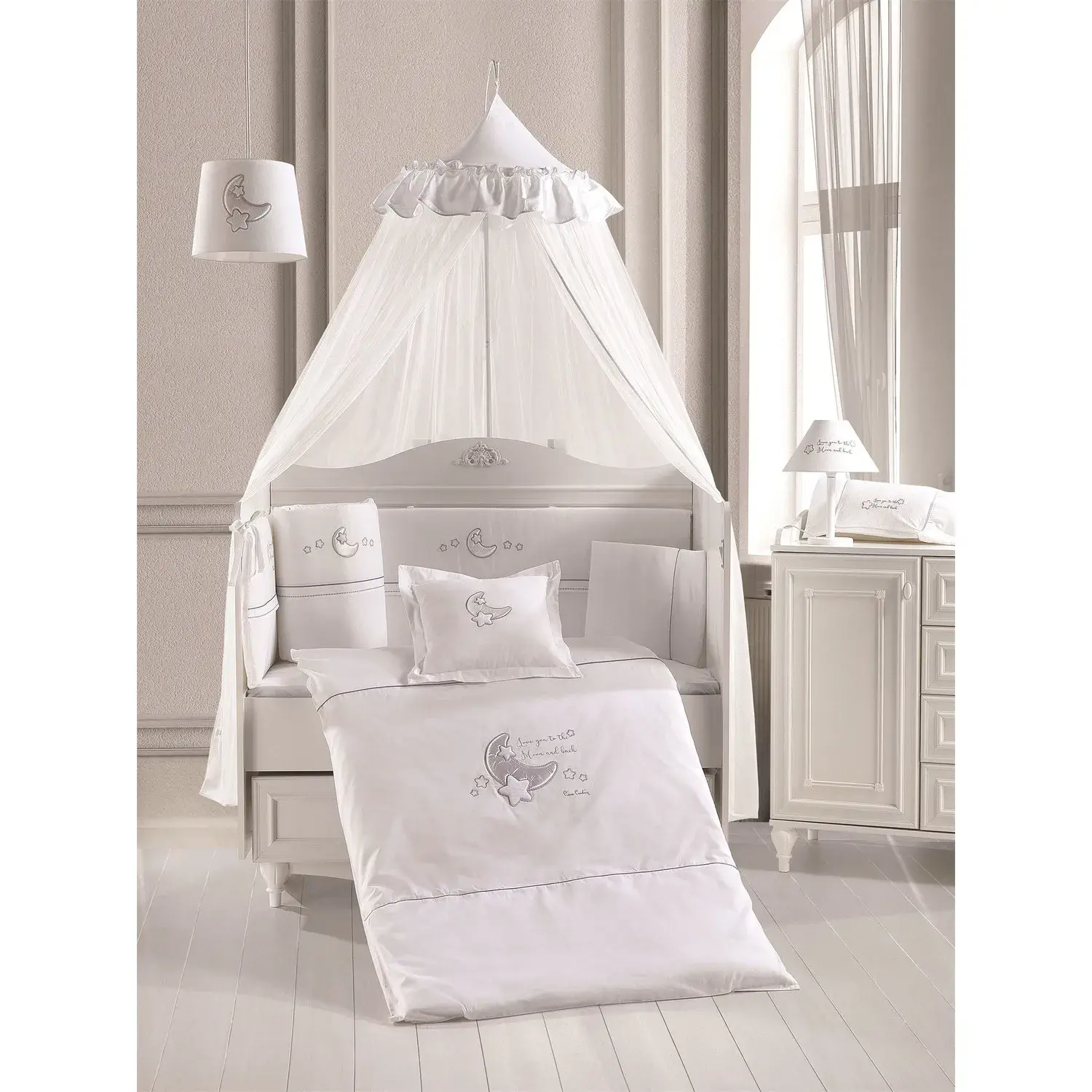 Pierre Cardin Uyku Seti i 75X130 cm - Moon And White 10 Parça Bebek Uyku Seti
