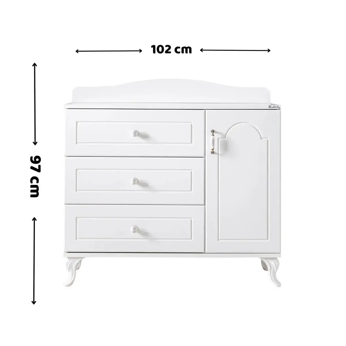 - Şifonyer, 57 cm x 102 cm x 97 cm ölçülerindedir