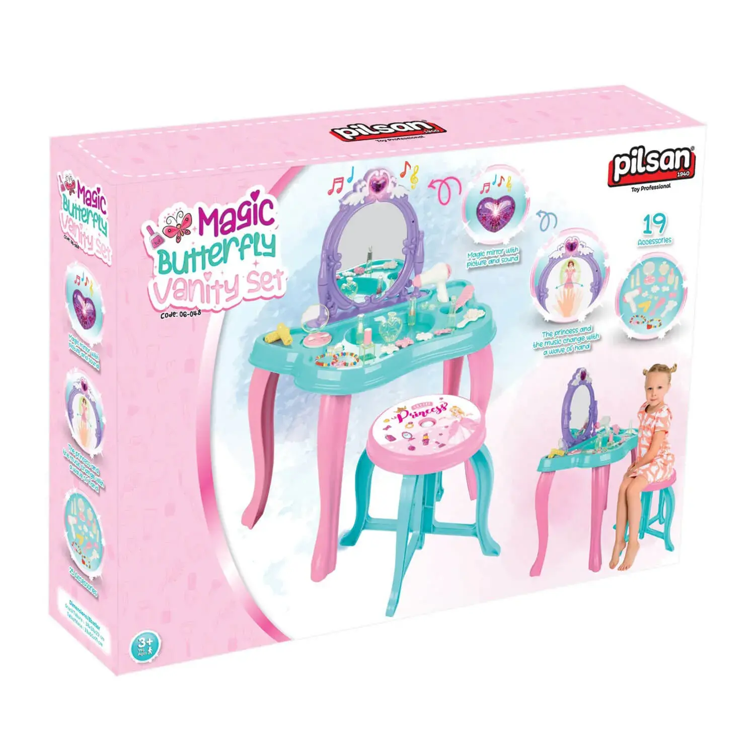 Pilsan Kelebek Makyaj Masası Müzikli Sihirli 19 Parça Pembe