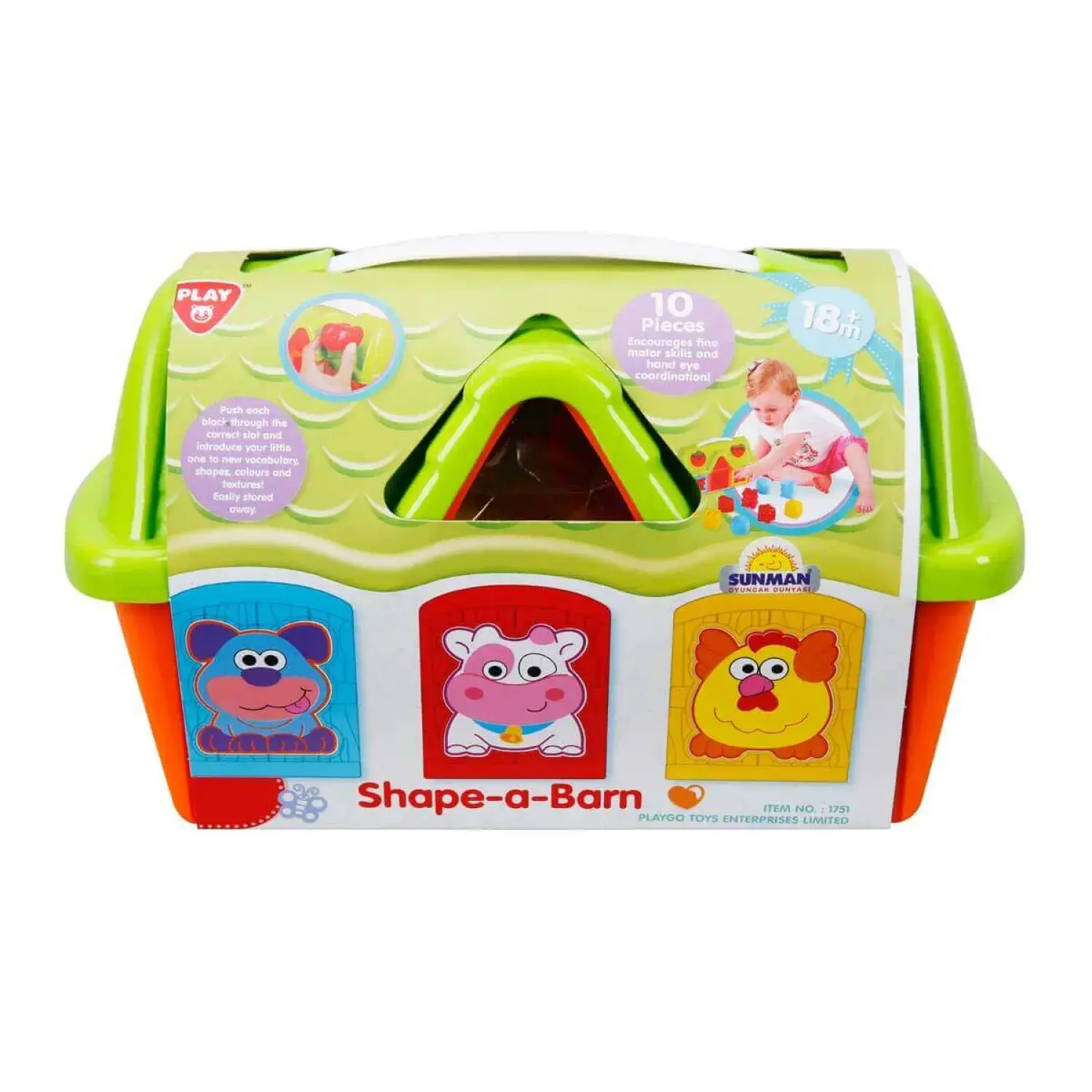 - Eğlenceli oyuncak ev, model sıralayıcı 10 farklı şekilden oluşmaktadır. Birbirinden sevimli şekilleri evin yanlarında bulunan şekillere, uygun parçaları atıp evin içerisinde toplayabilirsiniz.
