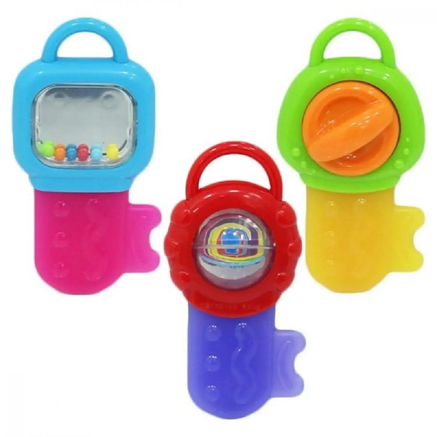 - Çeşitli dekoratif unsurlar yerleştirilmiş olan anahtar şeklinde çıngırak; boncuklu, döner kollu bir ekran veya resimlerle hareket edebilen bir top ile çocukların ilgisini çekecektir.