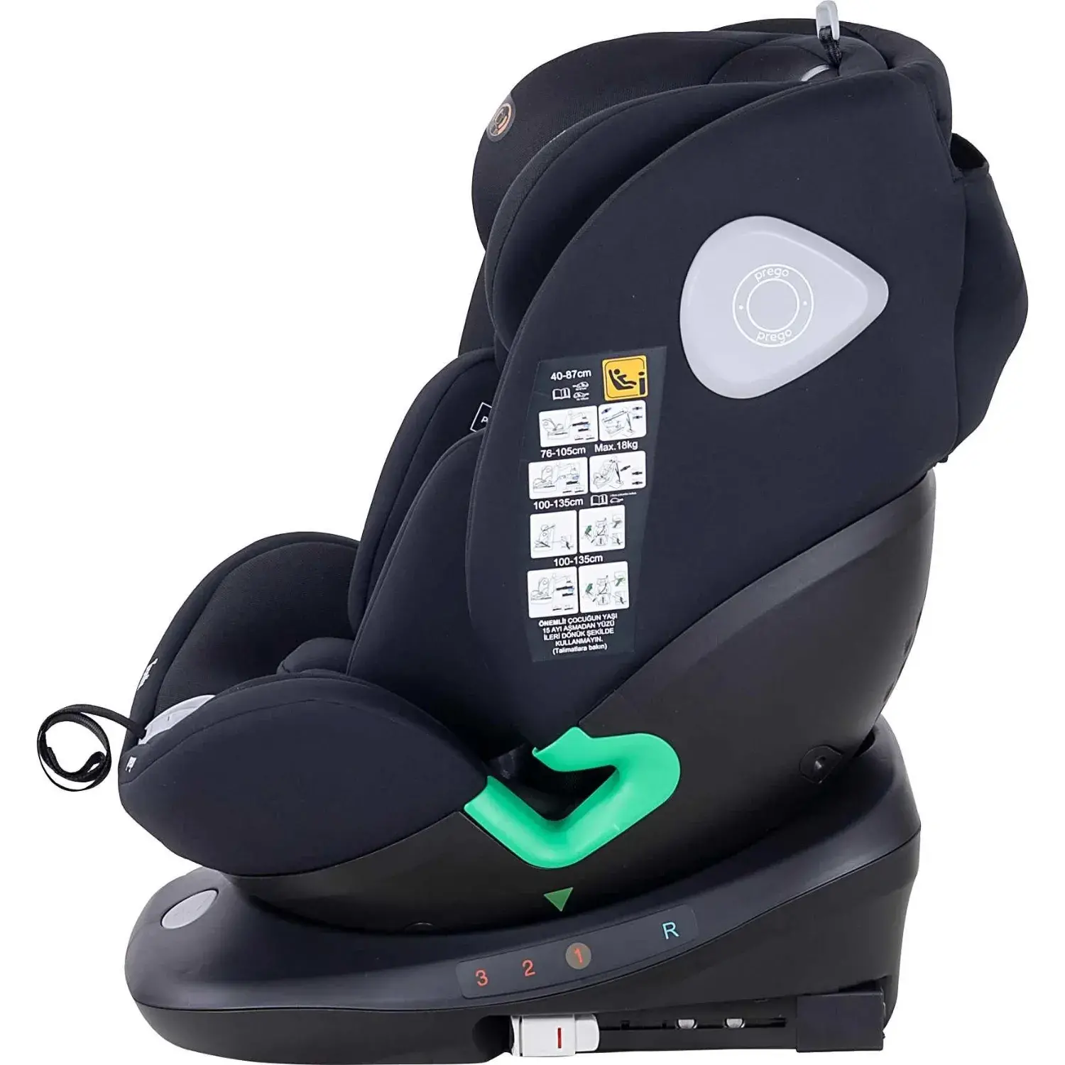 Prego Tronfix 360° Dönebilen Isofixli I-Size Oto Koltuğu 0-36 Kg Siyah Q9004