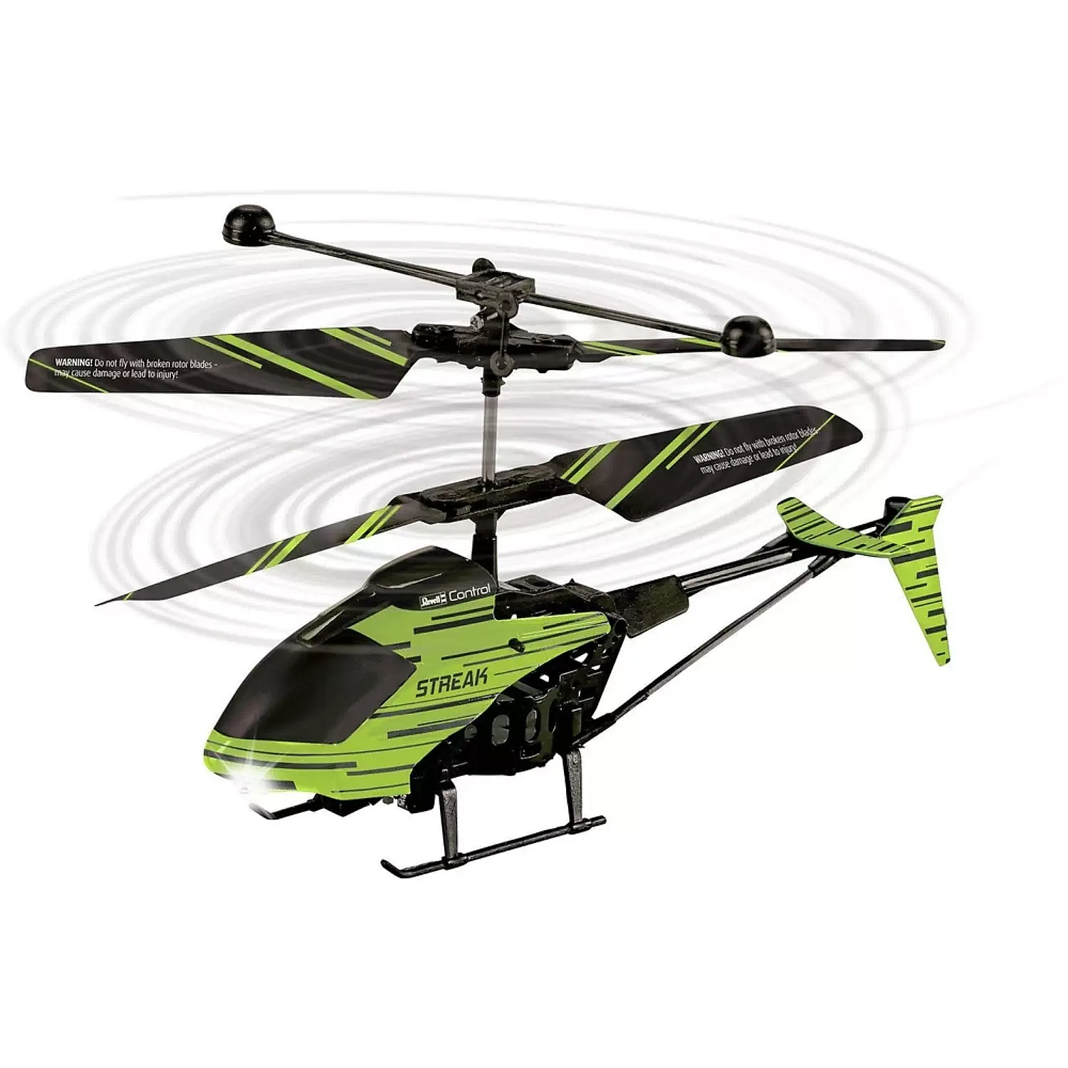 Revell Control, geceleyin LED ışıklarıyla karanlıkta parlayan uzaktan kumandalı bir helikopter sunuyor. Helikopterin uzaktan kumanda ile şarj edilmesi tamamen pratik ve kablosuzdur. 4 adet 1,5V AA pil gerektirir (dahil değildir).
