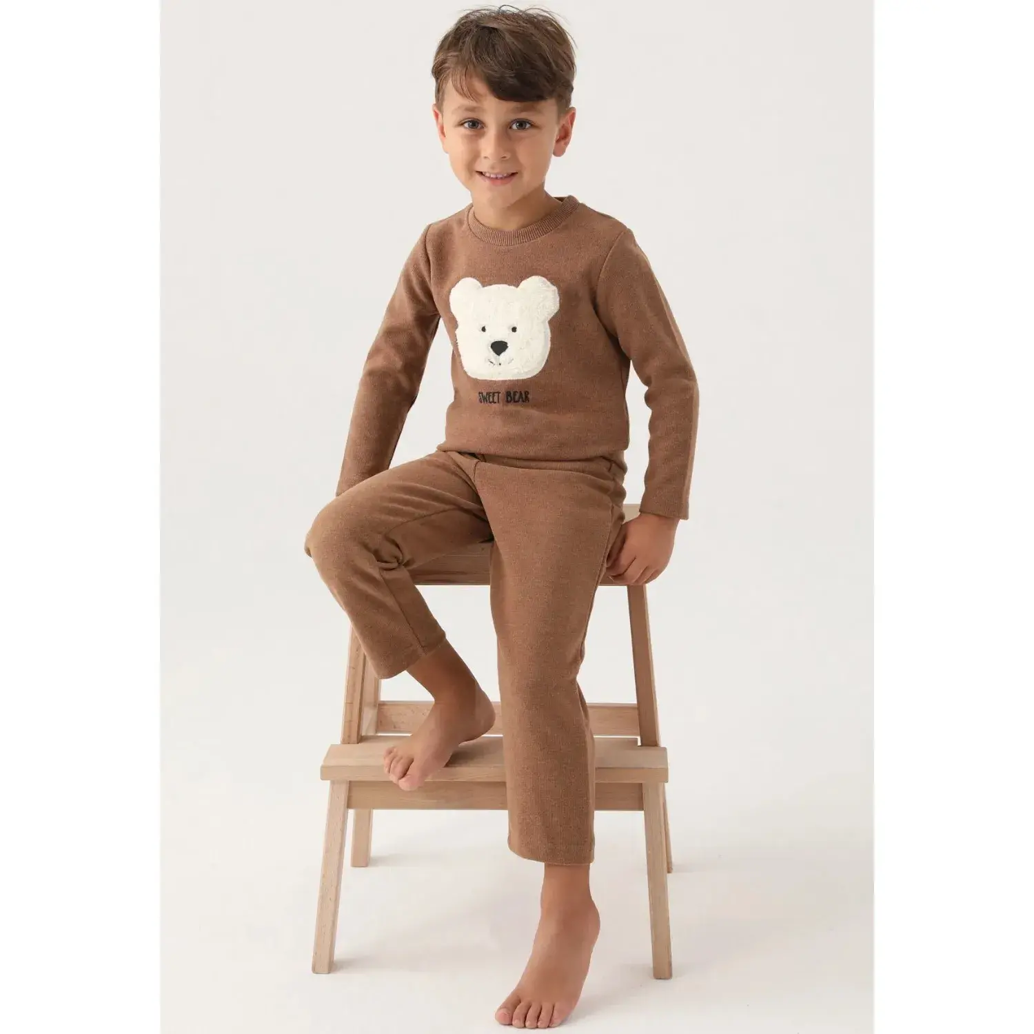 - Bu özel Pijama takımı, çocuğunuzun rahatlığını ve stilini bir araya getirir. Hardal rengi, enerji dolu bir görünüm sunar.