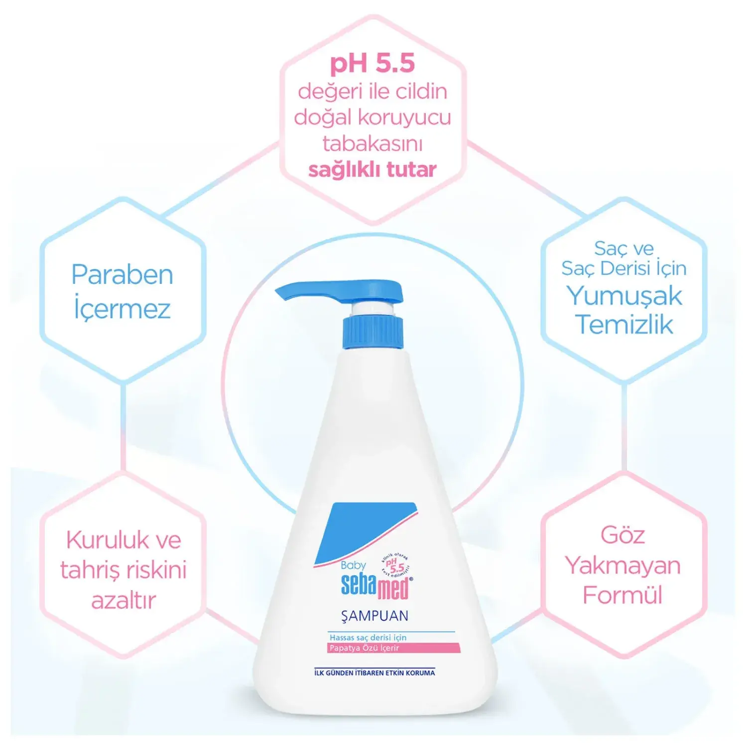 - Sebamed Bebek Şampuanı, yumuşak formülü ile bebeklerin hassas saç derisi ve saç bakımı için idealdir.