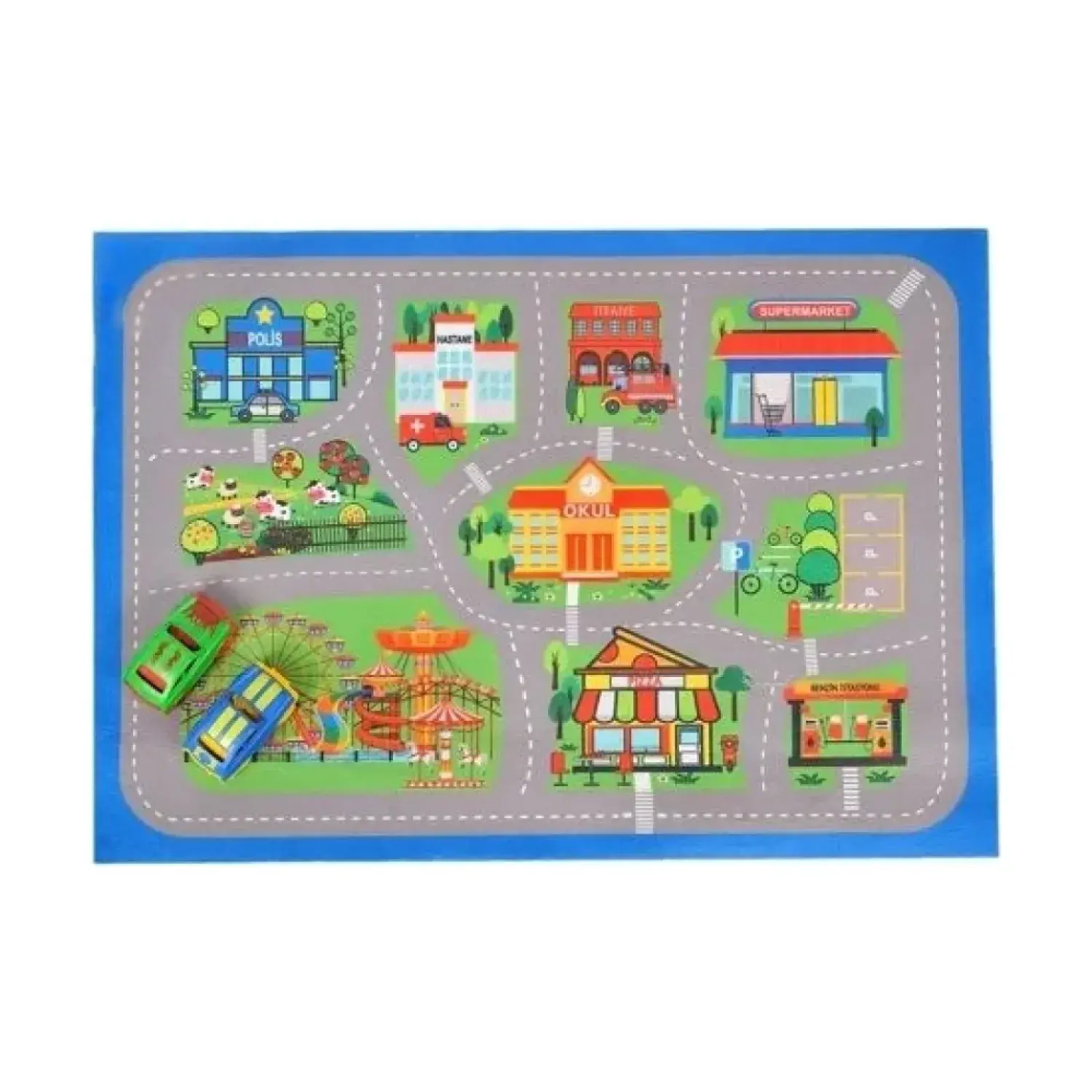 - Şehir Macerası oyun halısı İçeriği: 2 adet oyuncak araba 1 adet oyun halısı