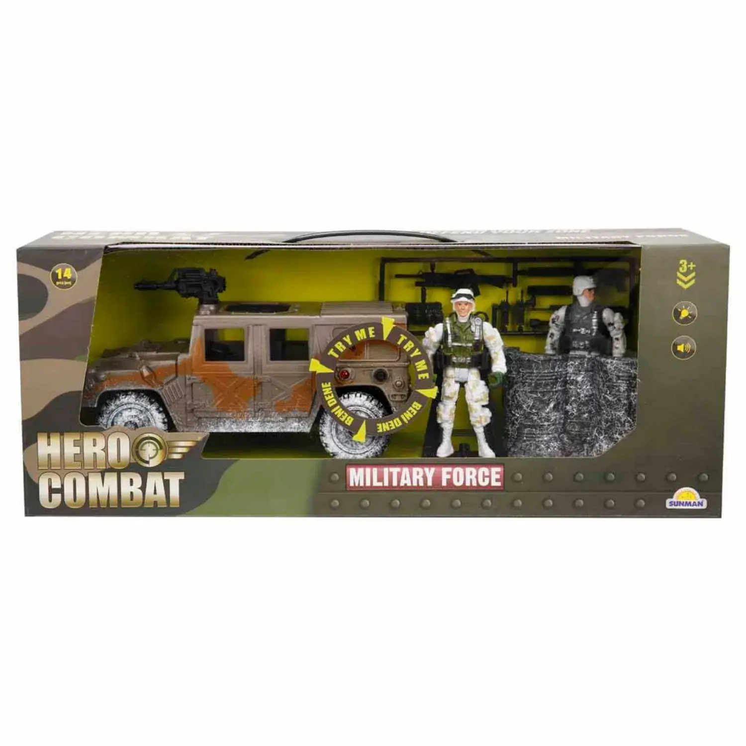 - Kutu içerisinde; 1 askeri araç, 2 adet figür, barikat ve çeşitli aksesuarlar yer almaktadır.