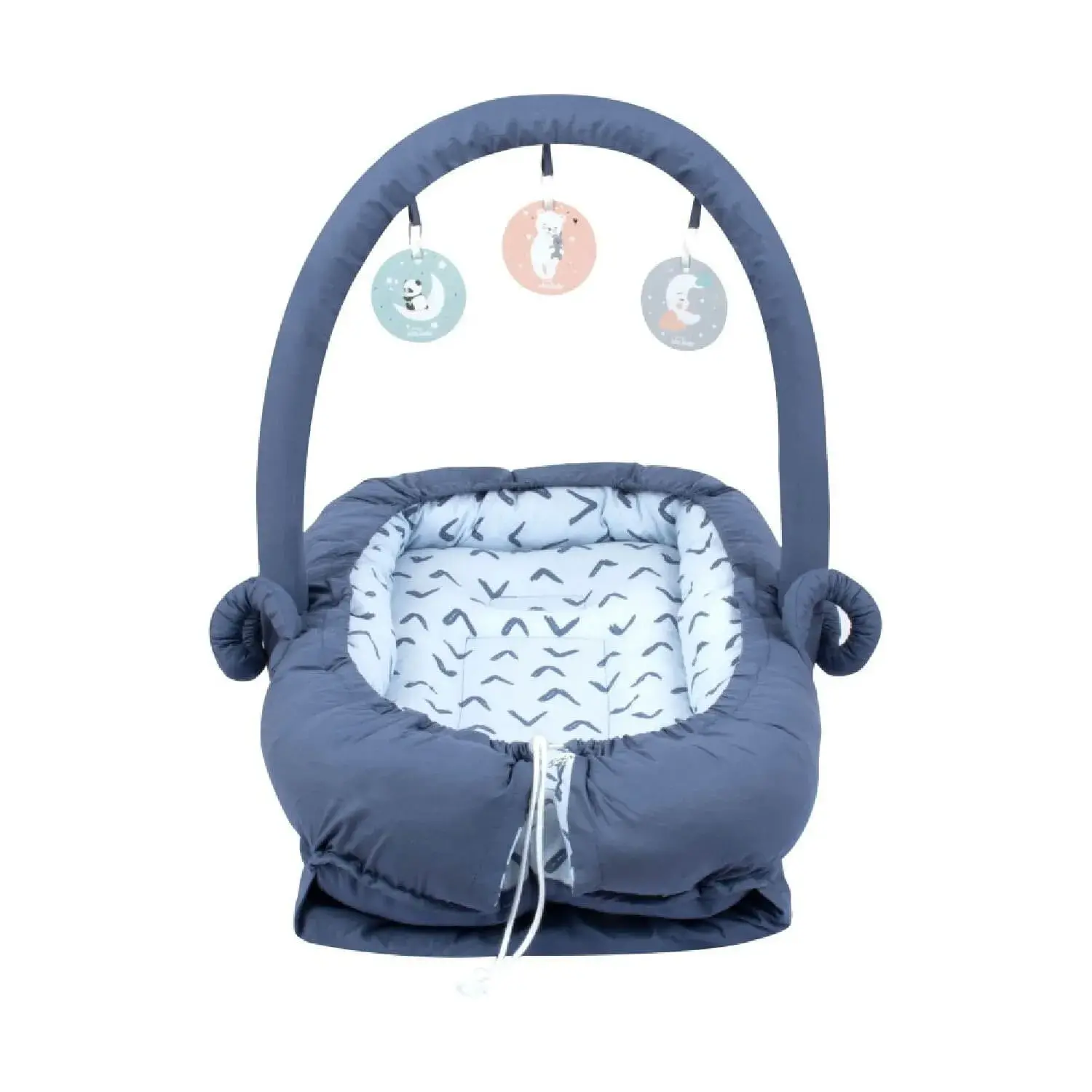 - Oyuncak borusundaki sevimli kartlar bebeğinizin el-göz ve kas koordinasyonunu keşfetmesine ve geliştirmesine yardımcı olur. Bebeğinizin sevdiği oyuncakları kayışlara asarak da kullanabilirsiniz.