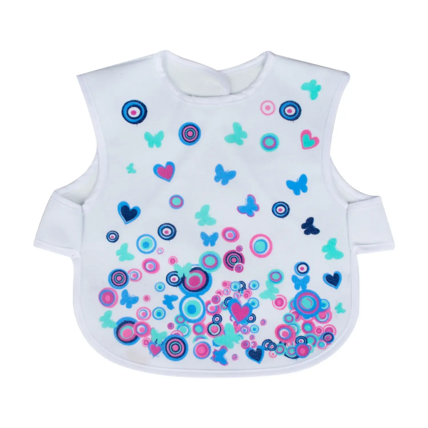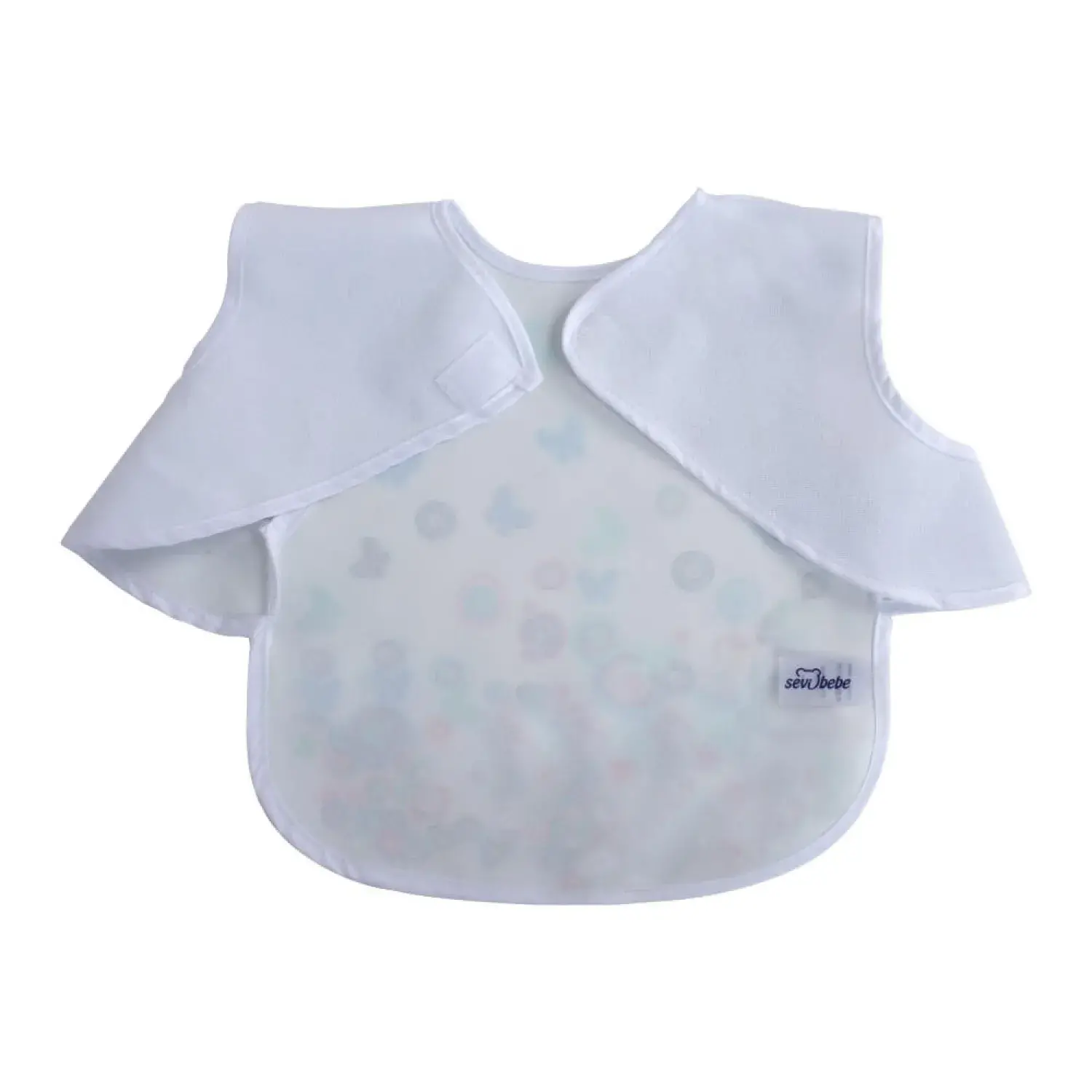 - Kol bantlarindan giydirilir, böylelikle bebeginiz önlügü üzerinden kolayca çekip çikartamaz.