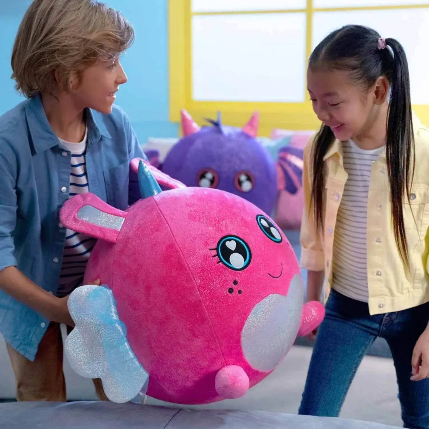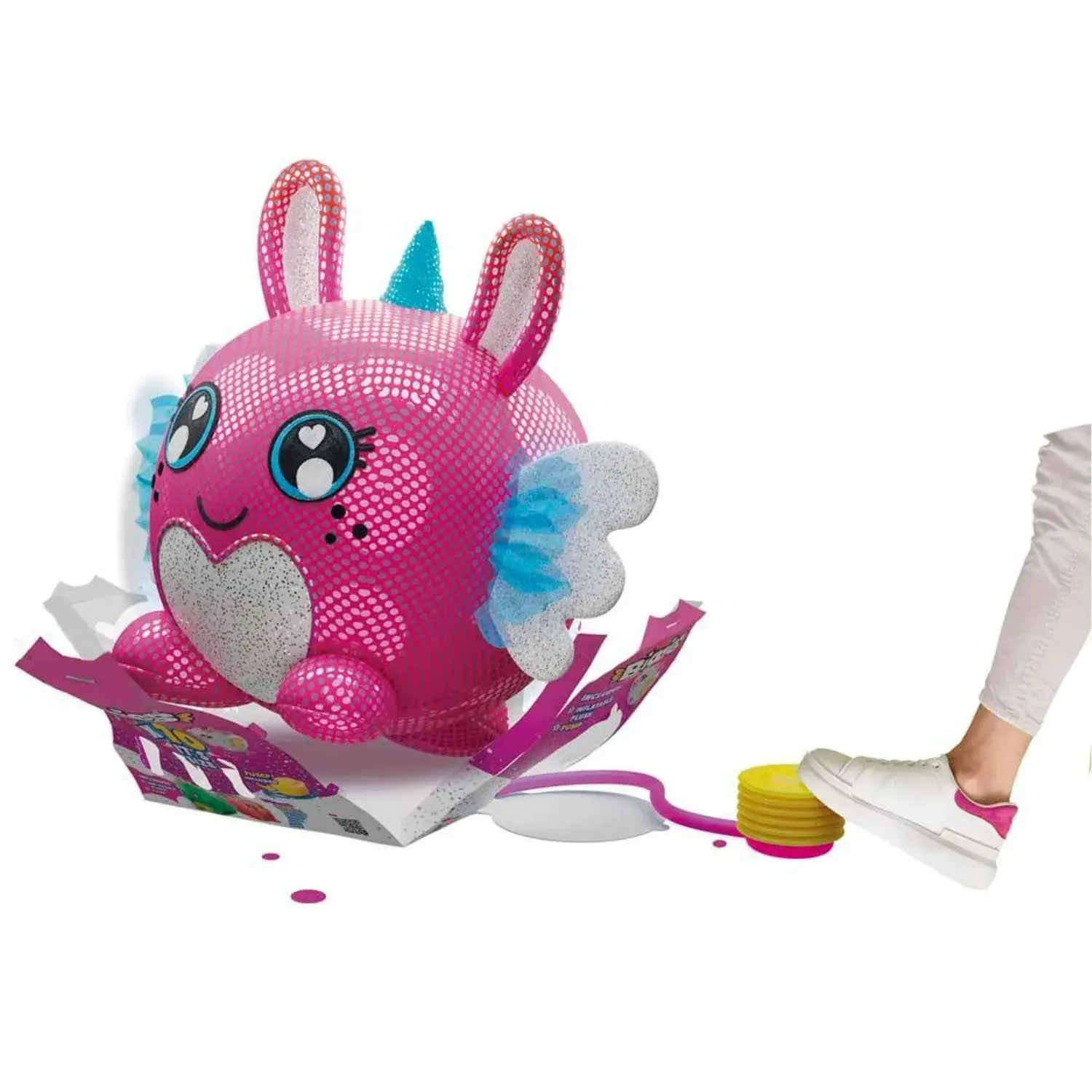 Şişirildiğinde orijinal boyutunun 10 katına kadar büyüyebilir. Peluş, gizemli bir kutu içinde gelir; şişirme pompasını ortaya çıkartın ve peluş büyümeye başlayana kadar pompalayın. Pompalamaya devam ettiğinizde peluşün xxl boyutlarına ulaştığını görecek ve çok eğleneceksiniz. Açılış deneyimi, oyun sürecinin bir parçası haline gelir. Peluş, tekrar kullanılabilir, söndürülebilir ve kolayca saklanabilir.