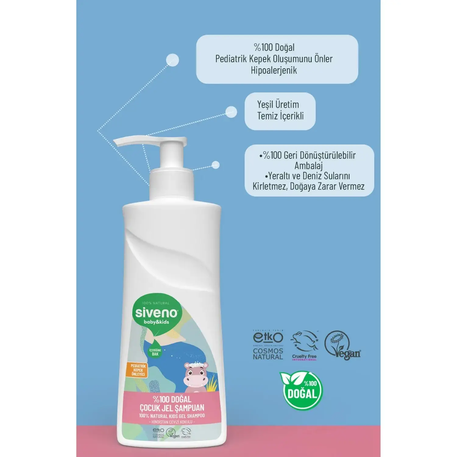 - Yenidoğan döneminde banyo süresi hızlı ve konforlu olması gerektiğinden, Siveno %100 Doğal Jel Şampuan ile tüm vücut ve saç temizliği hızlıca yapılabilir.