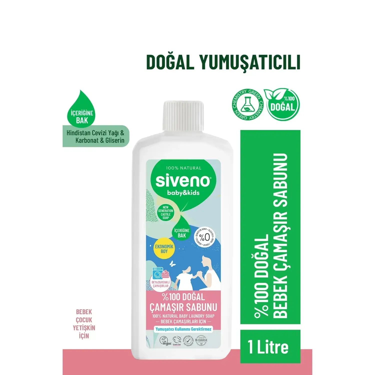 - Siveno %100 Doğal Bebek Çamaşır Sabunu Kendinden Yumuşatıcılı Bitkisel Deterjan Konsantre Vegan 1000 ml