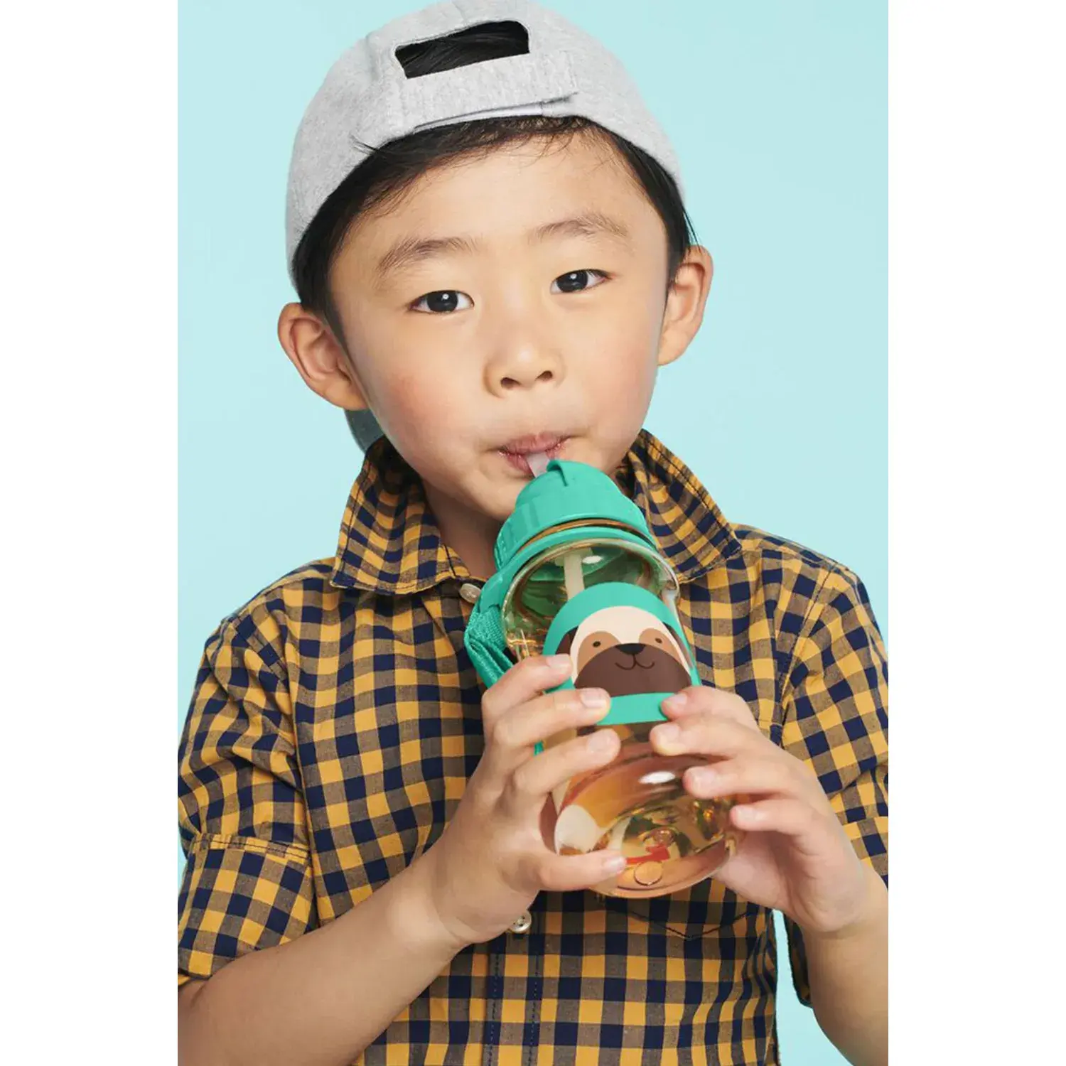Sevimli Zoo karakterlerine sahip pipetli suluk, kullanışlı tutma kayışı ile su, meyve suyu veya küçük çocuğunuzun içmeyi sevdiği her şey için olmazsa olmazı olacak.