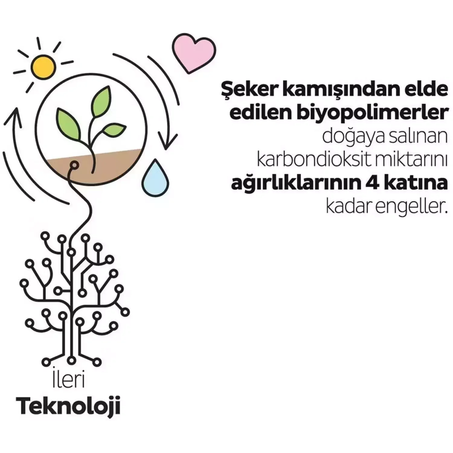 Üründe bulunan film yüzeyler, doğadaki karbondioksit miktarını azaltarak oksijen üretimi yapan şeker kamışlarından elde edilen biyopolimerler içermektedir.