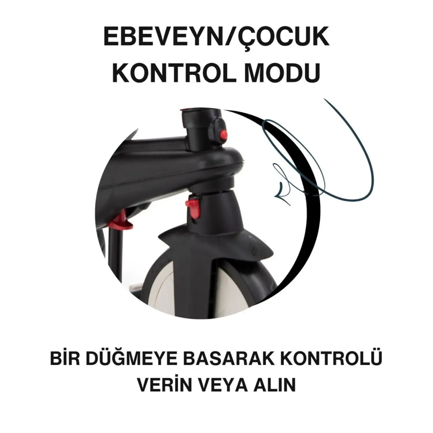 Ebeveyn/Çocuk Kontrol Modu: Ebeveyn/çocuk kontrolü ile, üç tekerlekli bisikletin herhangi bir zamanda kim tarafından kontrol edileceğine siz karar verebilirsiniz.