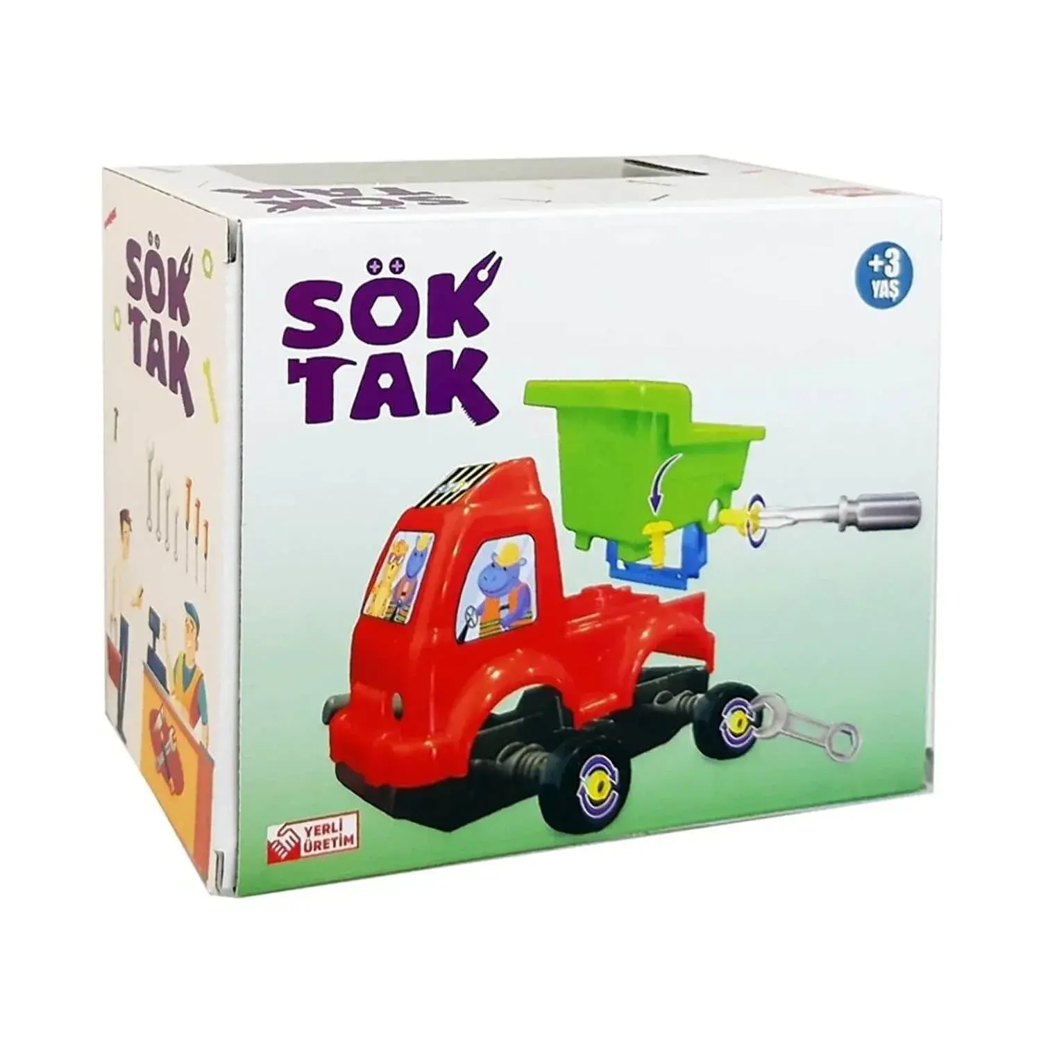 İçerisinde bulunan tornavida ile sökülüp tekrar takılarak eğlenerek oynar.