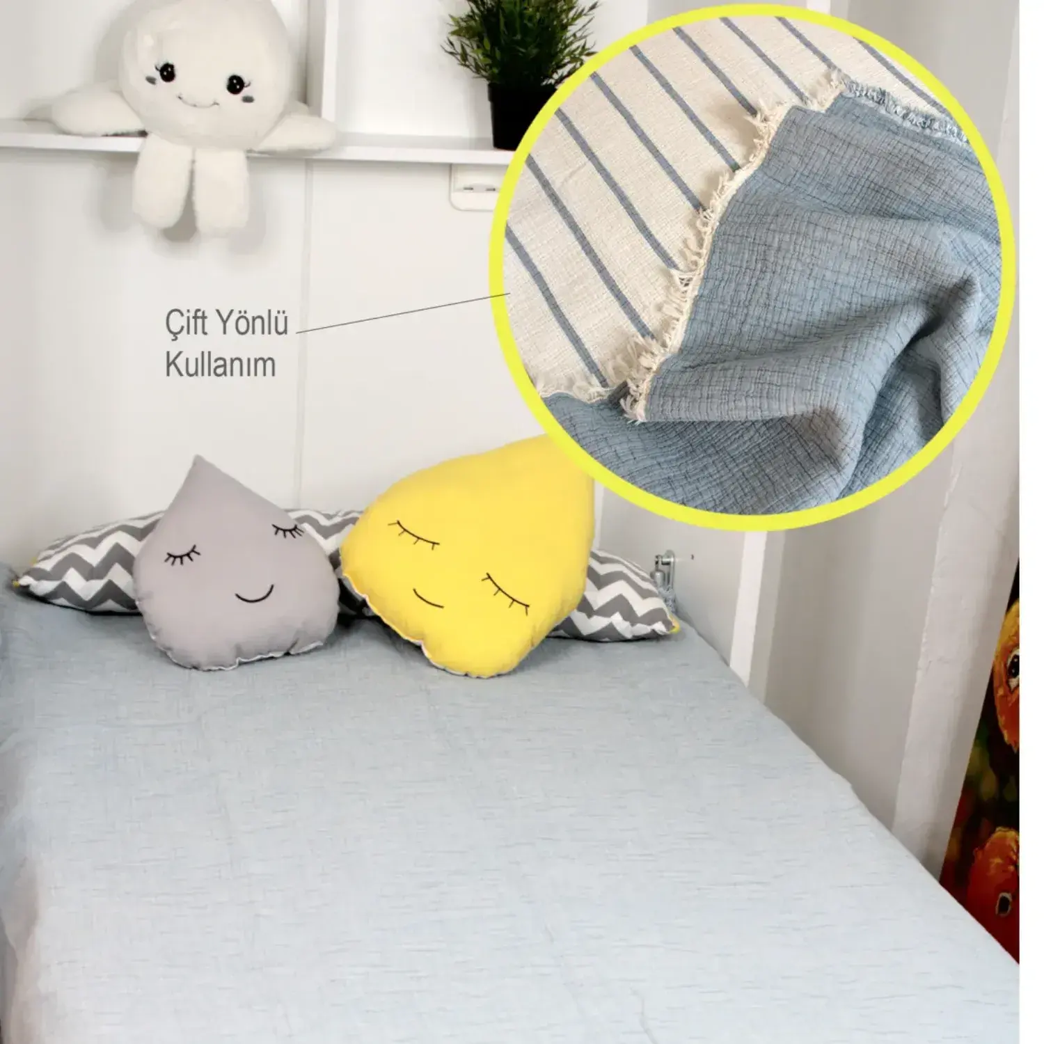 - Görsellerdeki yastık vb. dekor ürünler dahil değildir. (Sadece Çift Taraflı Yatak Örtüsü)