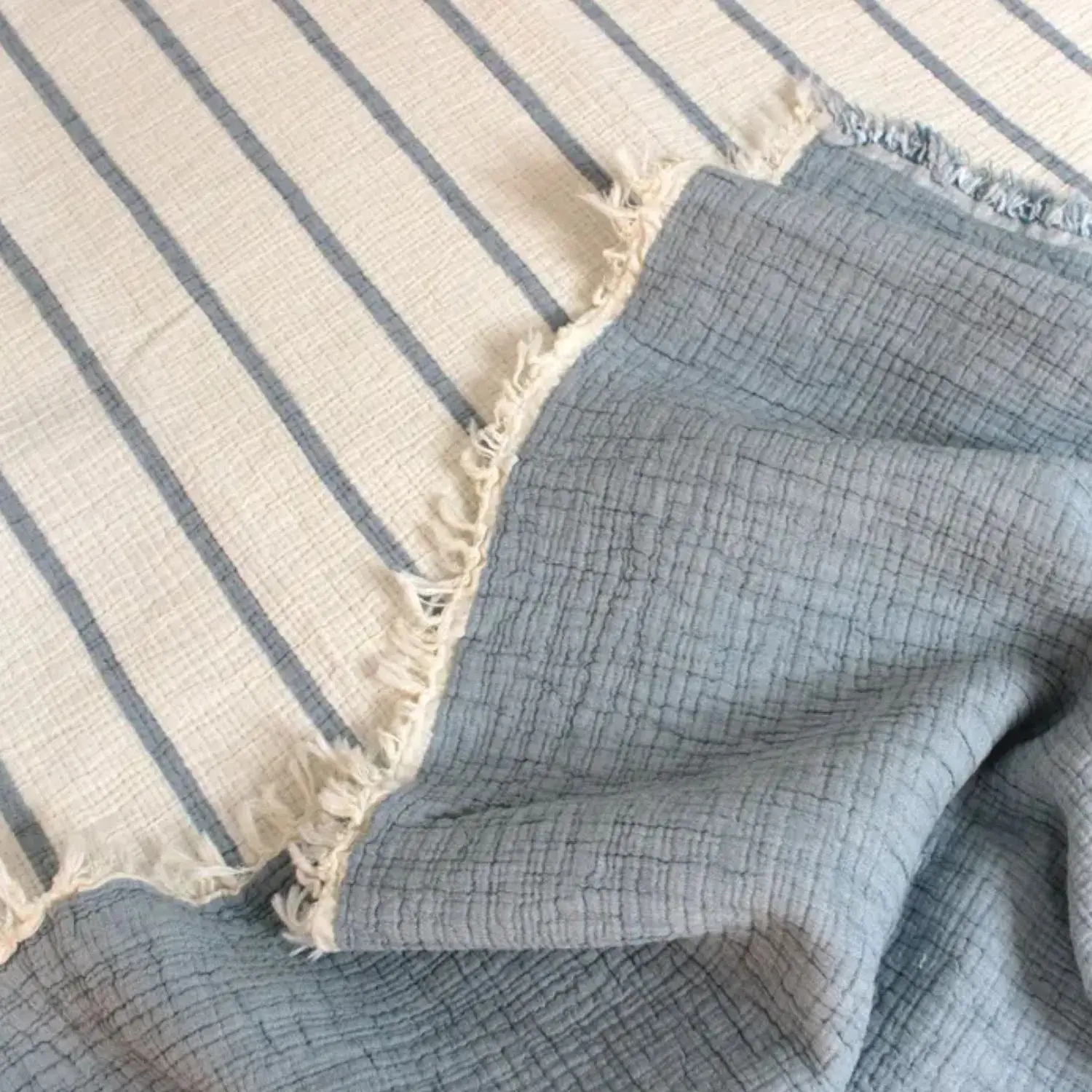 Çift Taraflı Müslin Yatak Örtüsü Ve Battaniye 160*195 Lacivert