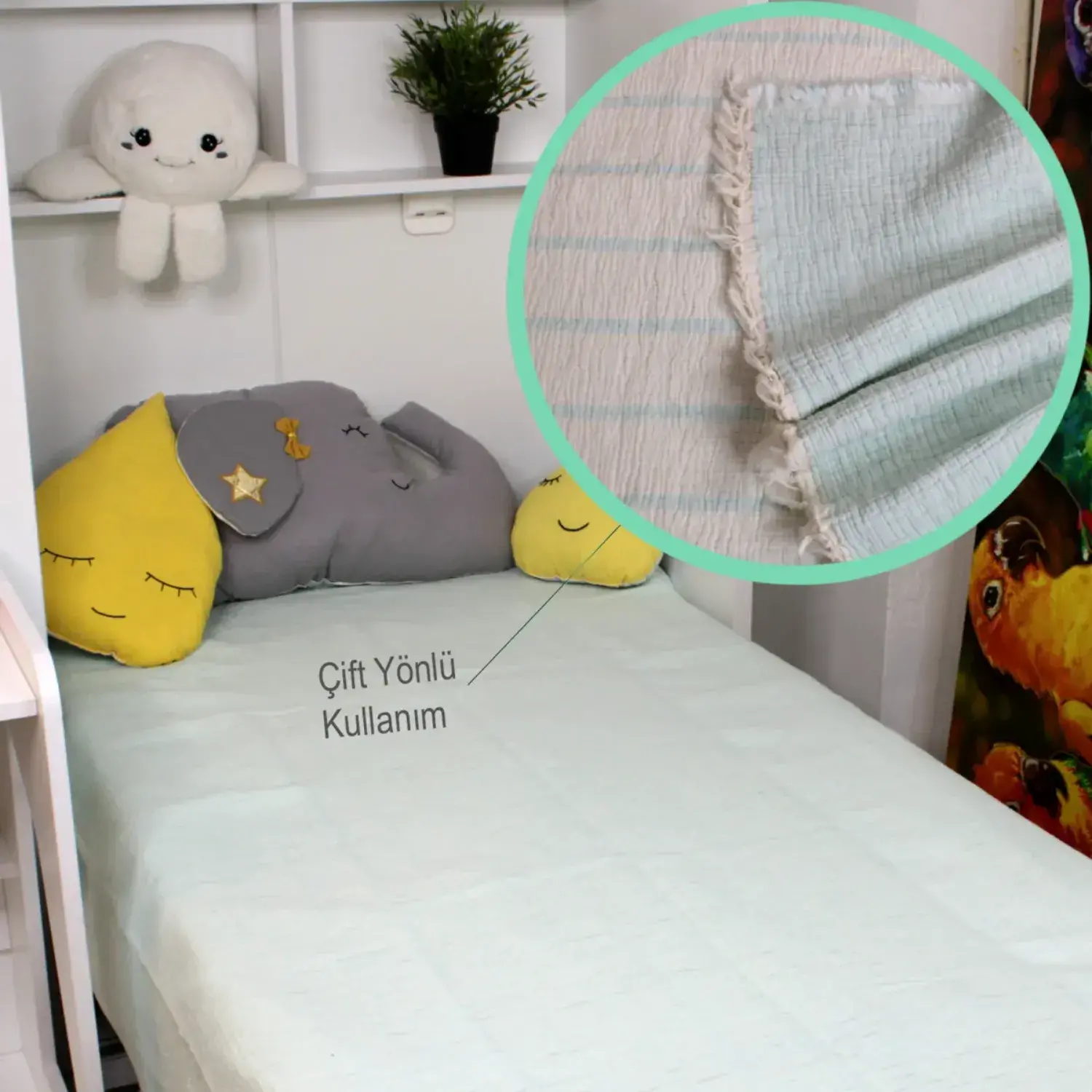 Çift Taraflı Müslin Yatak Örtüsü Ve Battaniye 160*195 Mint