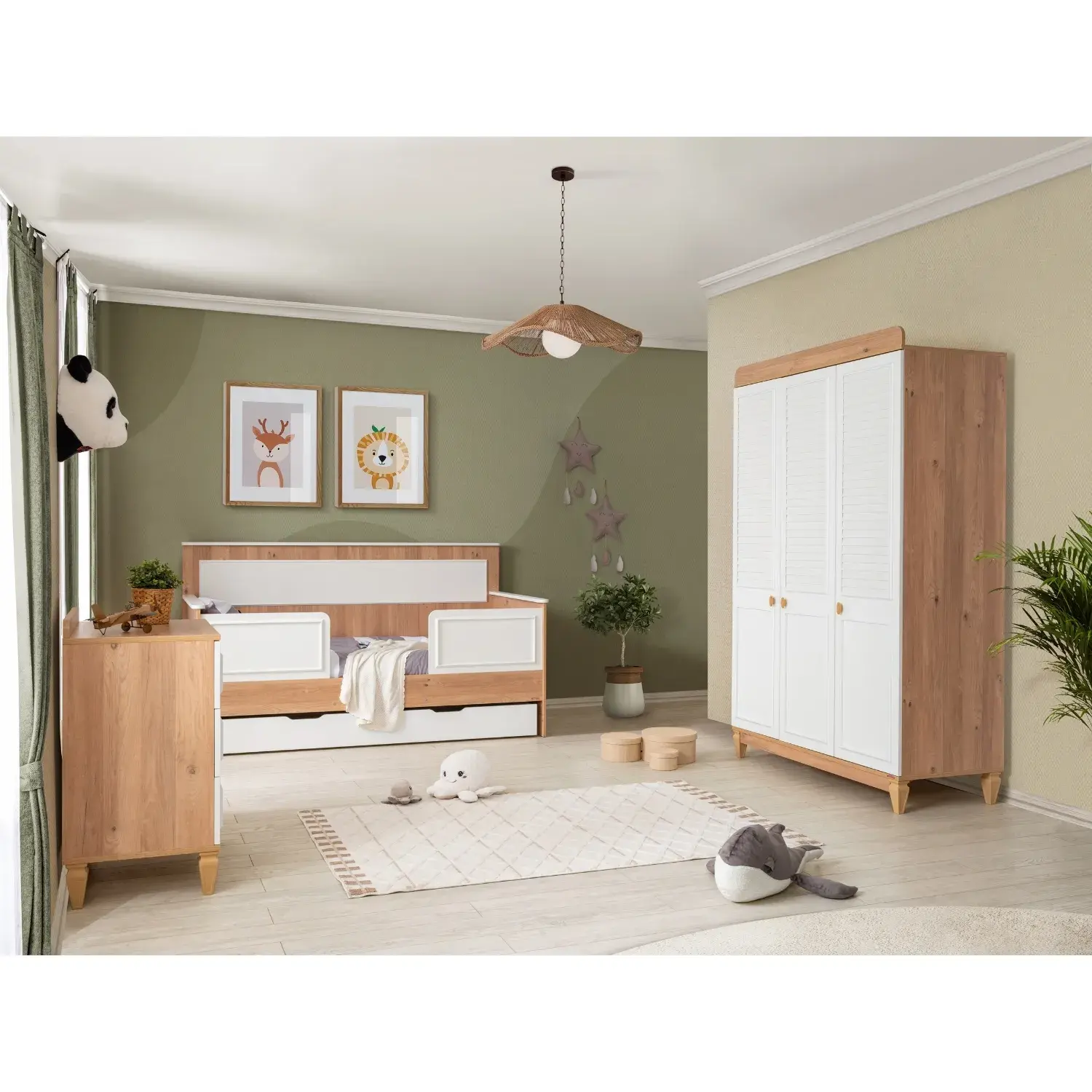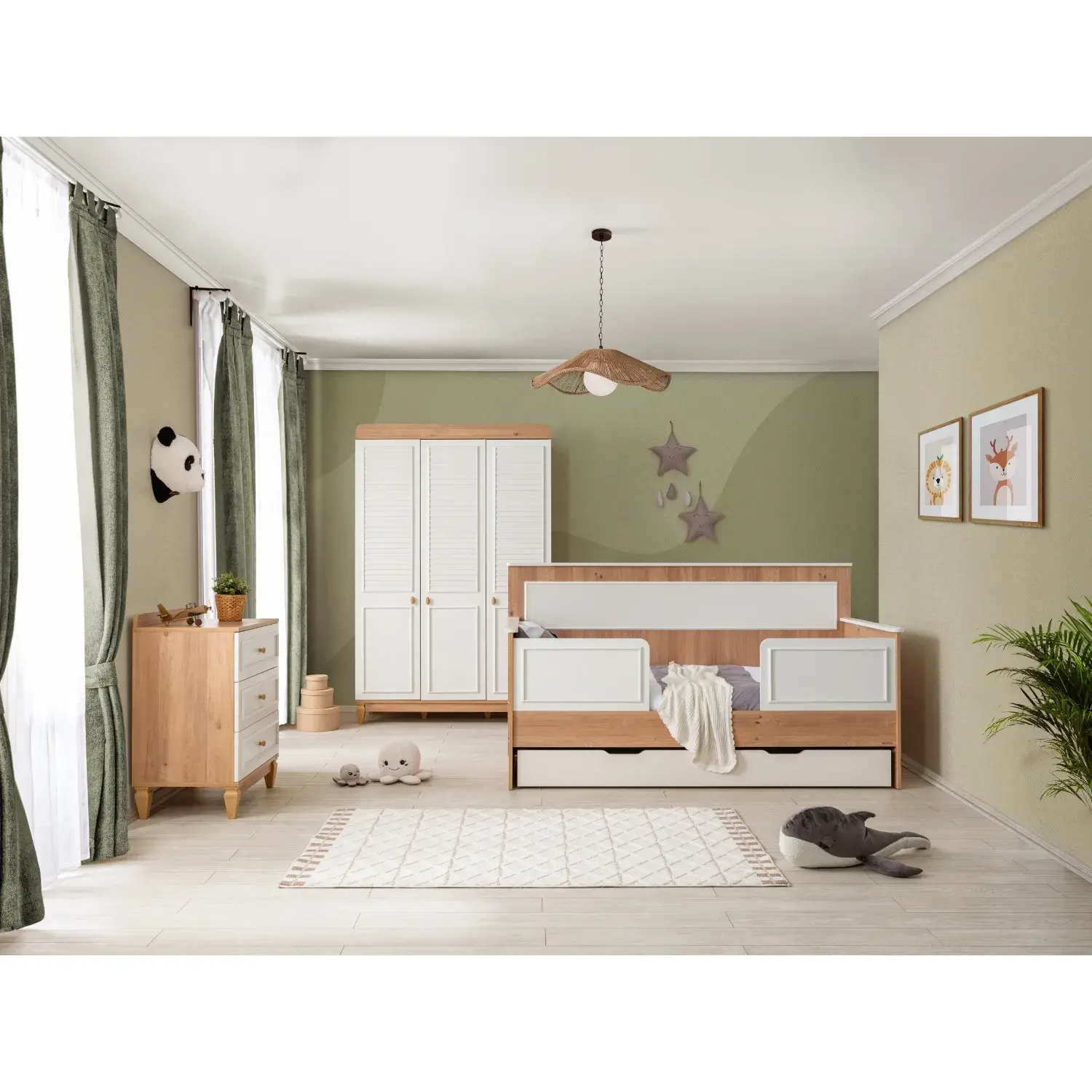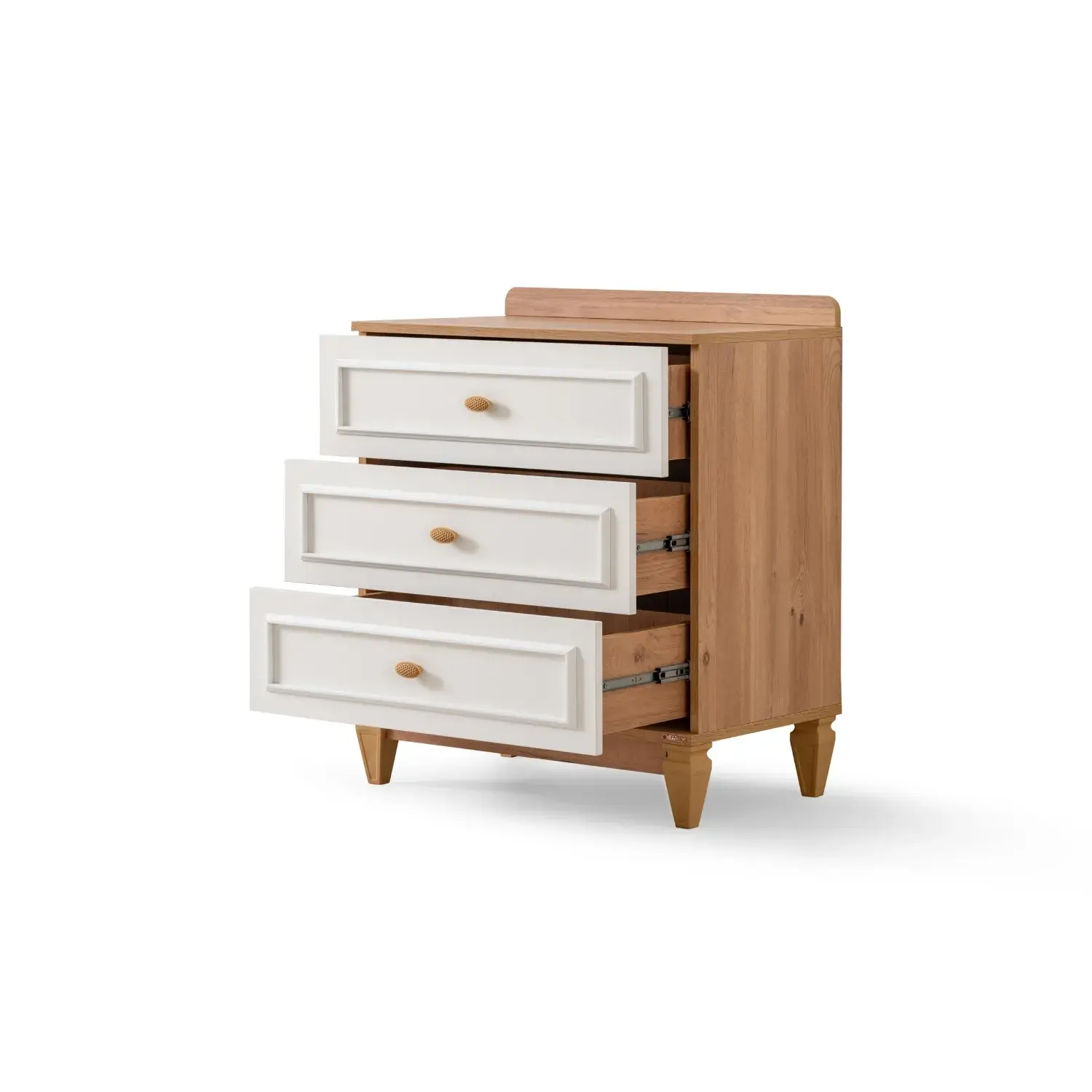 - Geniş iç hacme sahip 3 adet kullanışlı çekmecesi sayesinde çocuğunuzun kıyafet ve eşyalarını kolayca organize edebilirsiniz. Çekmecelerde yer alan stoperli sistem, sessiz ve güvenli kullanım imkânı sağlayarak çocuklar için ekstra konfor sunar.