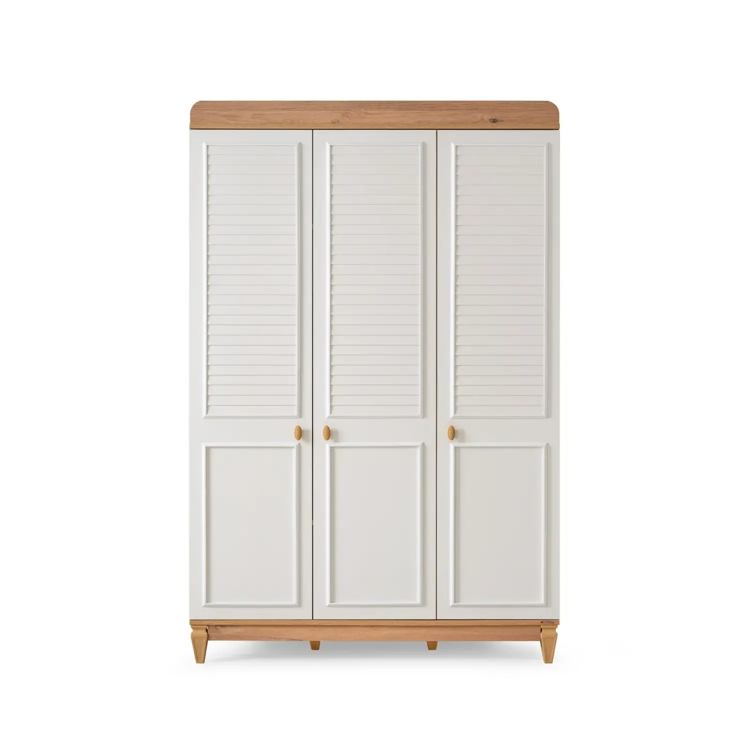 - Kapaklardaki panjur görünümü ve klapa detayları dolaba zarif bir dokunuş katarken, kendinden frenli menteşe sistemi ile sessiz ve güvenli bir kullanım sağlar. Yuvarlatılmış köşe tasarımı çocuklarınız için ekstra güvenlik sunarken, yüksek ayak yapısı sayesinde robot süpürgeyle kolay temizlik imkânı sunar.