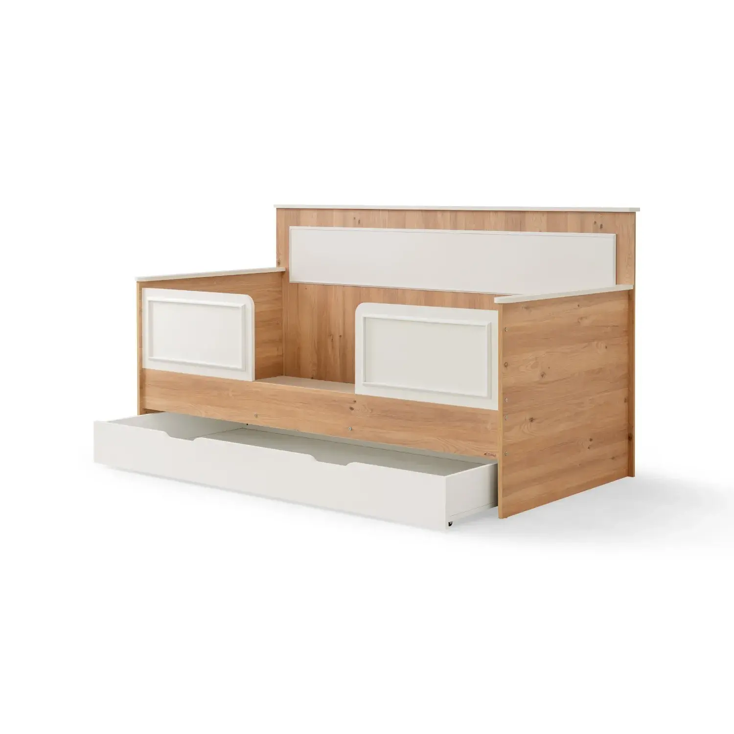 - Yerden yüksek tasarımı ve üç tarafını saran korkulukları sayesinde çocuklar için güvenli bir uyku ortamı oluşturur.