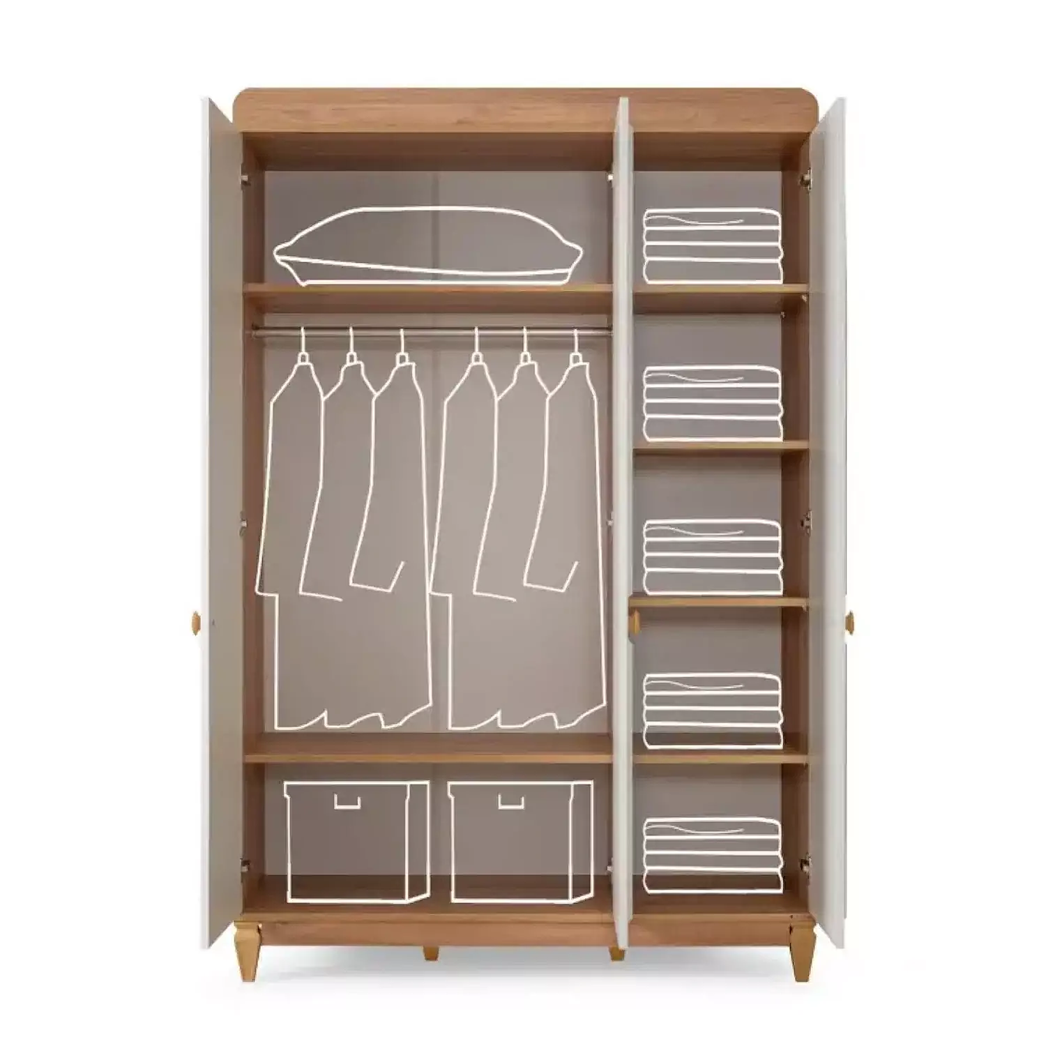 - Modern tasarımı ve işlevsel yapısıyla öne çıkan Tiffany Happy 3 Kapılı Dolap hem şıklık hem de düzen arayan aileler için ideal bir tercih! Geniş askılık alanı ve çok sayıda rafıyla kıyafet, oyuncak ve tüm ihtiyaçlar için mükemmel bir saklama alanı sunar.