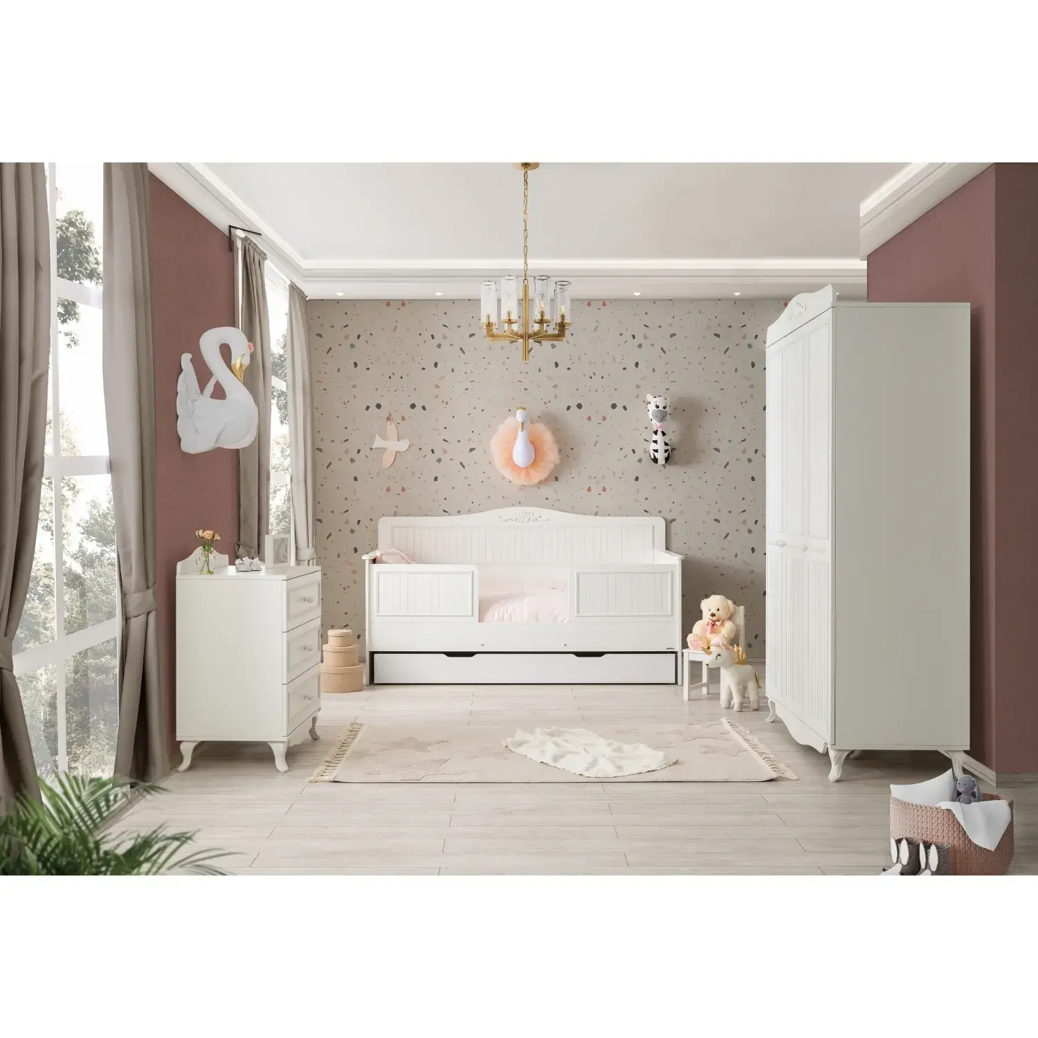 - Estetik tasarımı ve işlevsel yapısıyla öne çıkan Tiffany Jolie Şifonyer, zarif görünümüyle çocuk odalarına şık bir atmosfer kazandırırken, fonksiyonel detaylarıyla da düzenli bir kullanım sunar.