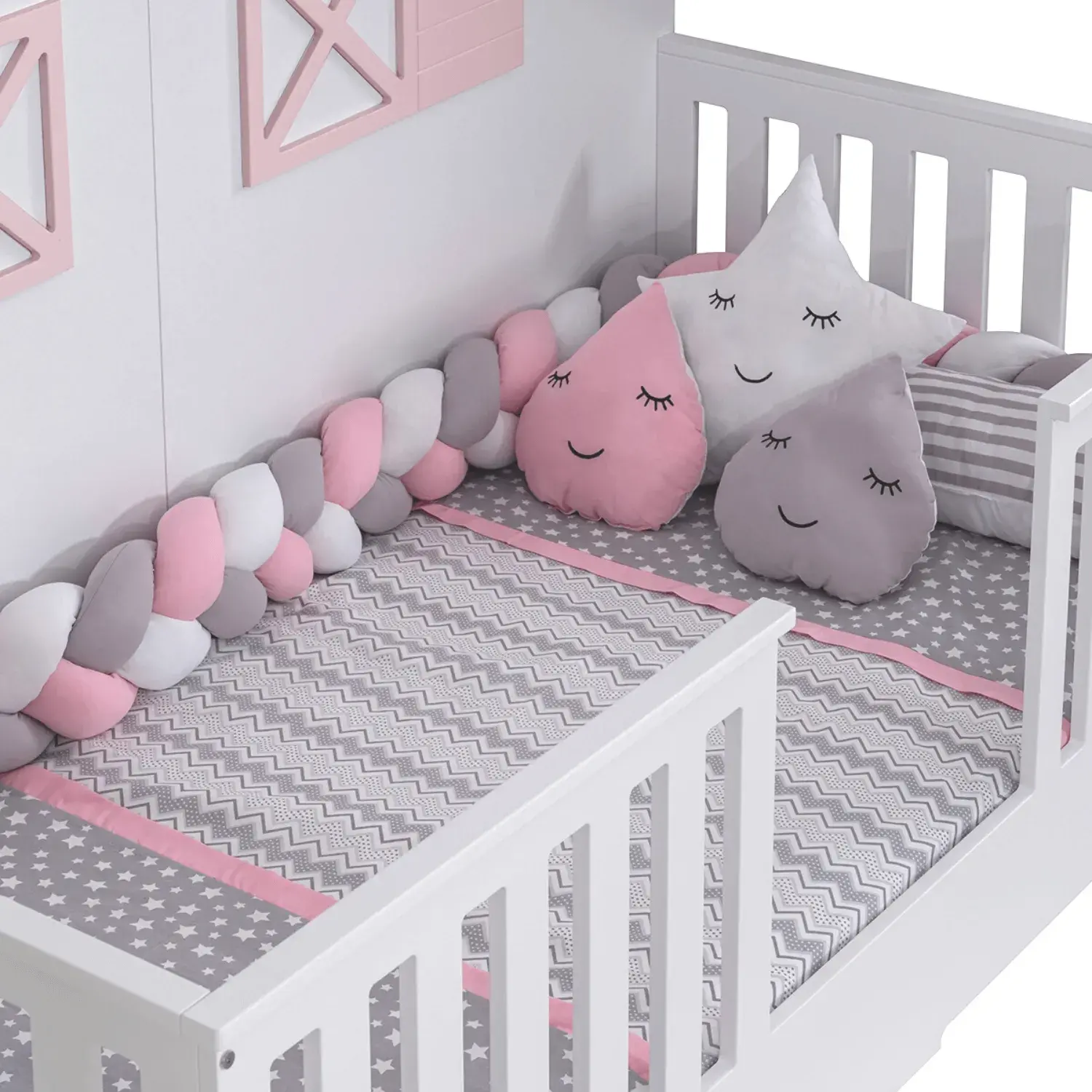 -Tiffany Satürn Montessori Kenar Koruma ve Örgü Seti, tek kişilik karyolada 3 kenar olarak kullanılır.