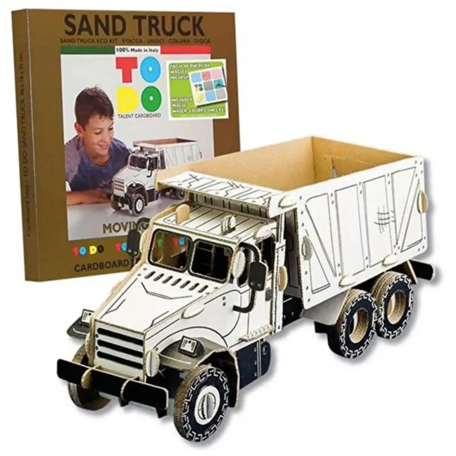 - Ürün, parçalara ayrılmış olarak gelir ve çocuk tarafından birleştirilerek 3D Boyana biliir Harfiyat Kamyonu haline getirilir.