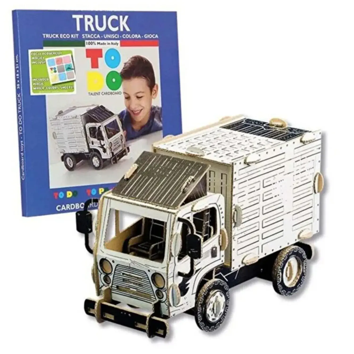 - Ürün, parçalara ayrılmış olarak gelir ve çocuk tarafından birleştirilerek 3D Boyana bilir Kamyon haline getirilir.