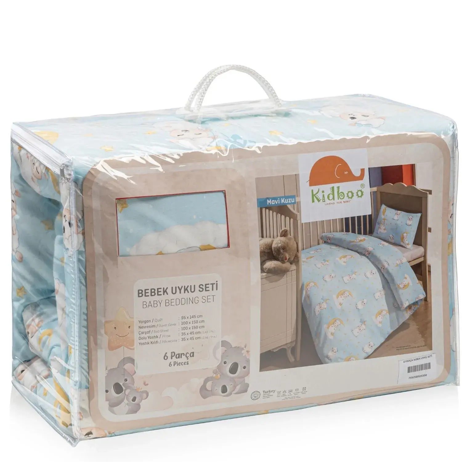 - Kidboo yumuşacık uyku seti 6 parçadan oluşmaktadır.