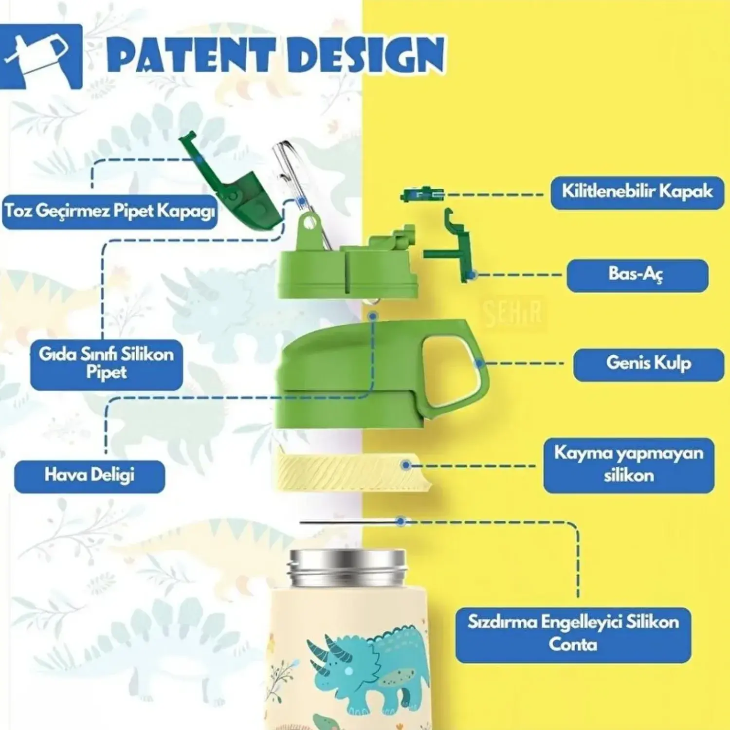 - Pipetli bu termos ergonomik yapısı sayesinde çocuklar için kolay kullanım sağlar; silikon pipet çıkarılarak temizlenebilir.