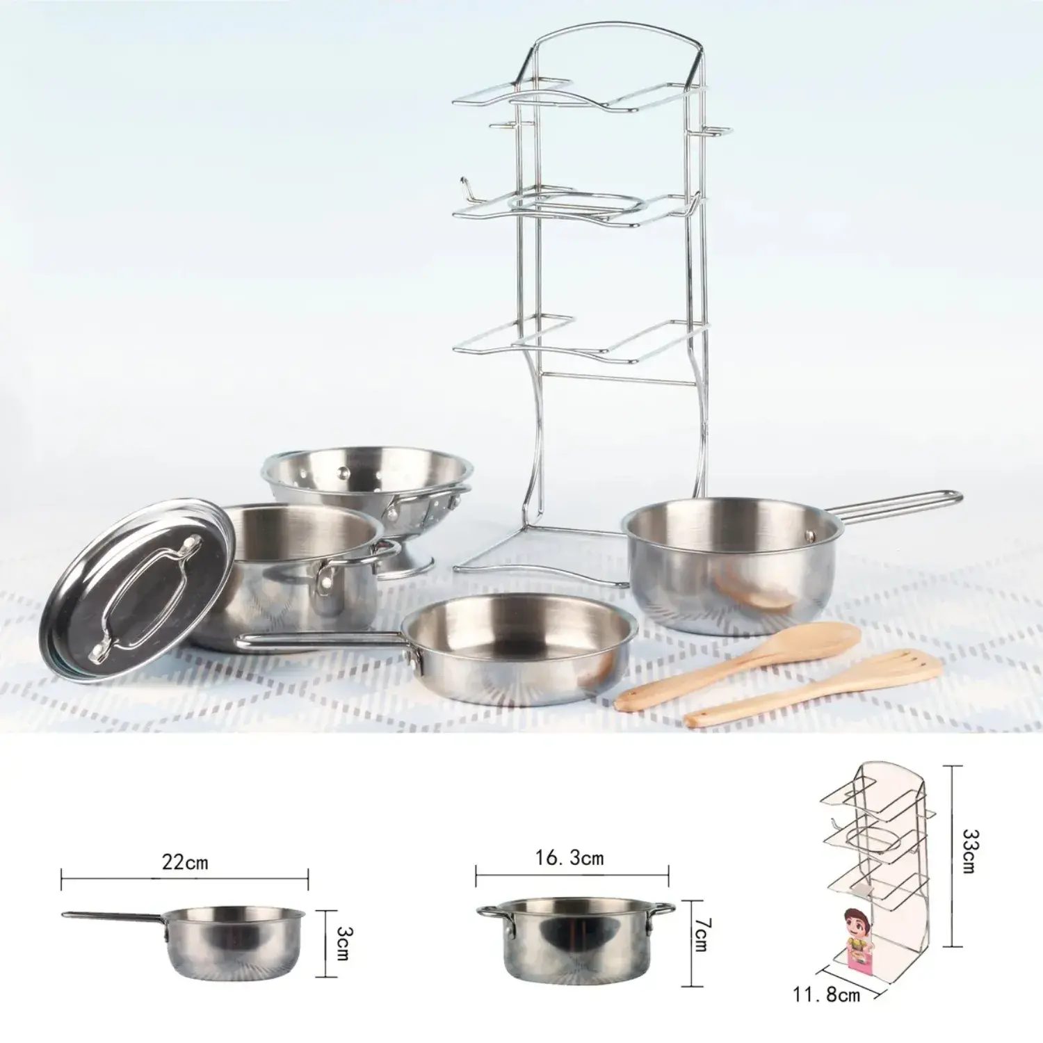 - Tencere, tava ve pişirme kapları metalden yapılmıştır, bu nedenle gerçek olanla aynı görünür ve hissettirir.