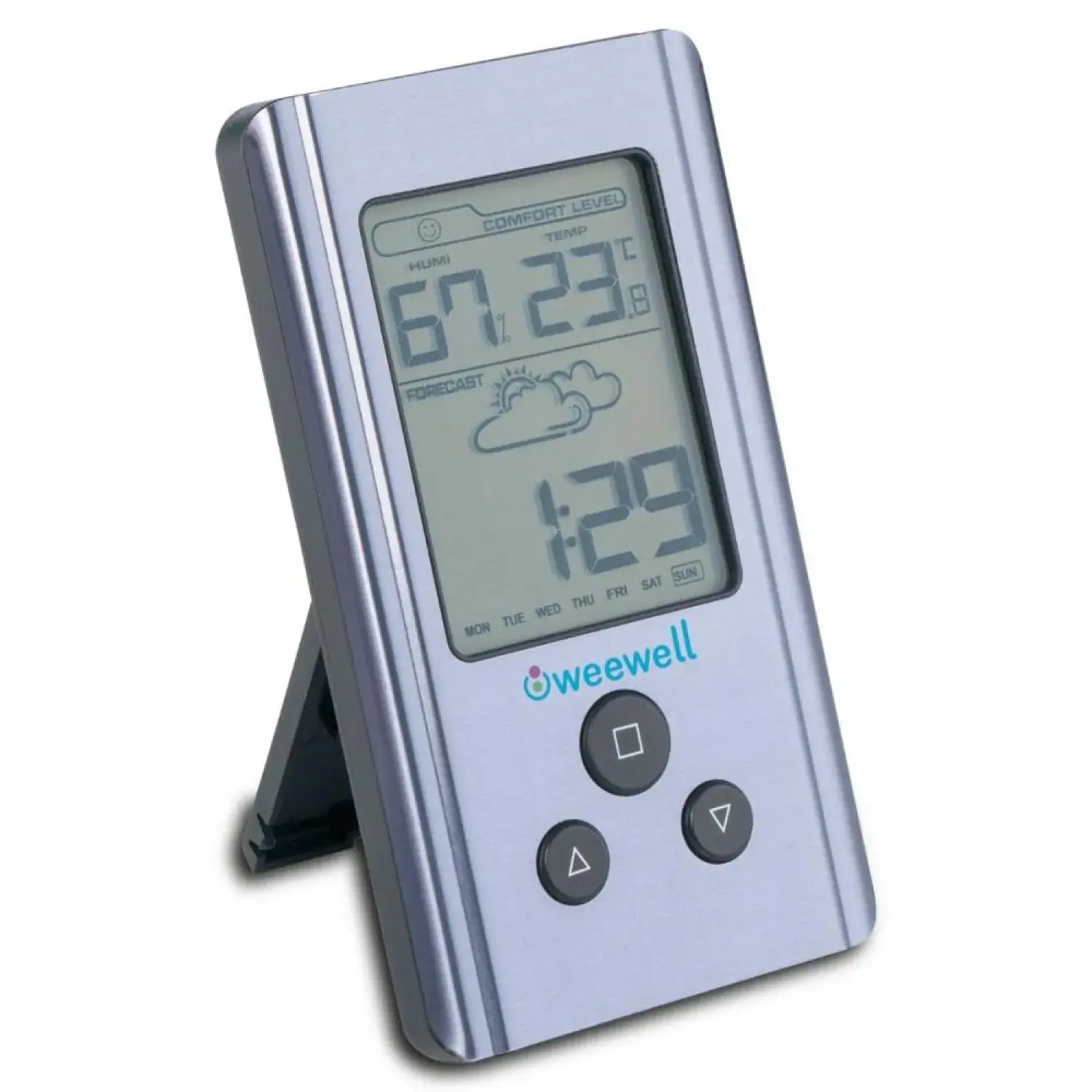 - Hava Durumu Tahmini: Weewell WHM150 Dijital Higro-Termometre, grafik ekranı üzerinde muhtemel hava durumunu tahmin eder. Böylece günlük planlarınızı yaparken hava koşullarına göre hazırlanabilirsiniz.