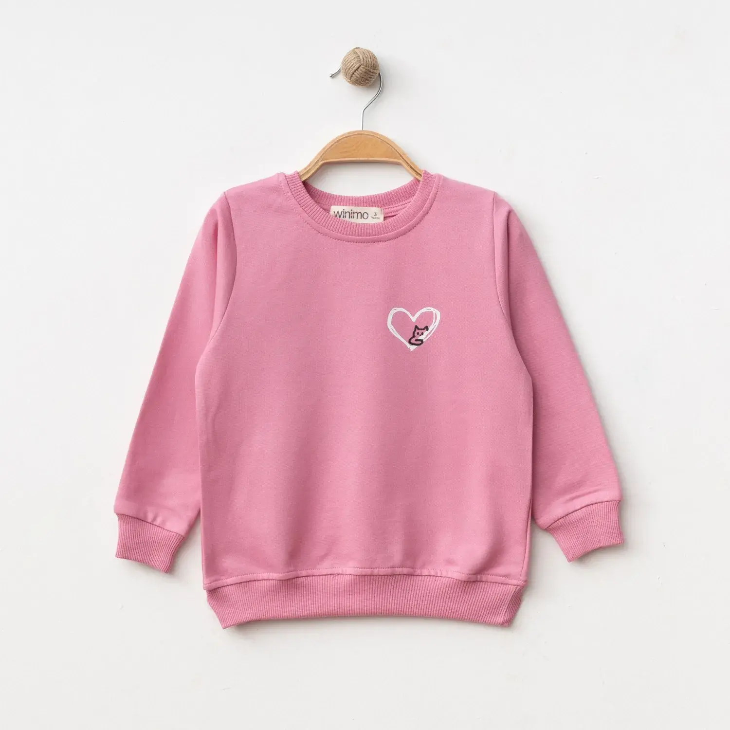 Winimo Kız Çocuk Sweatshirt Kalpli Kedi Baskılı Pembe