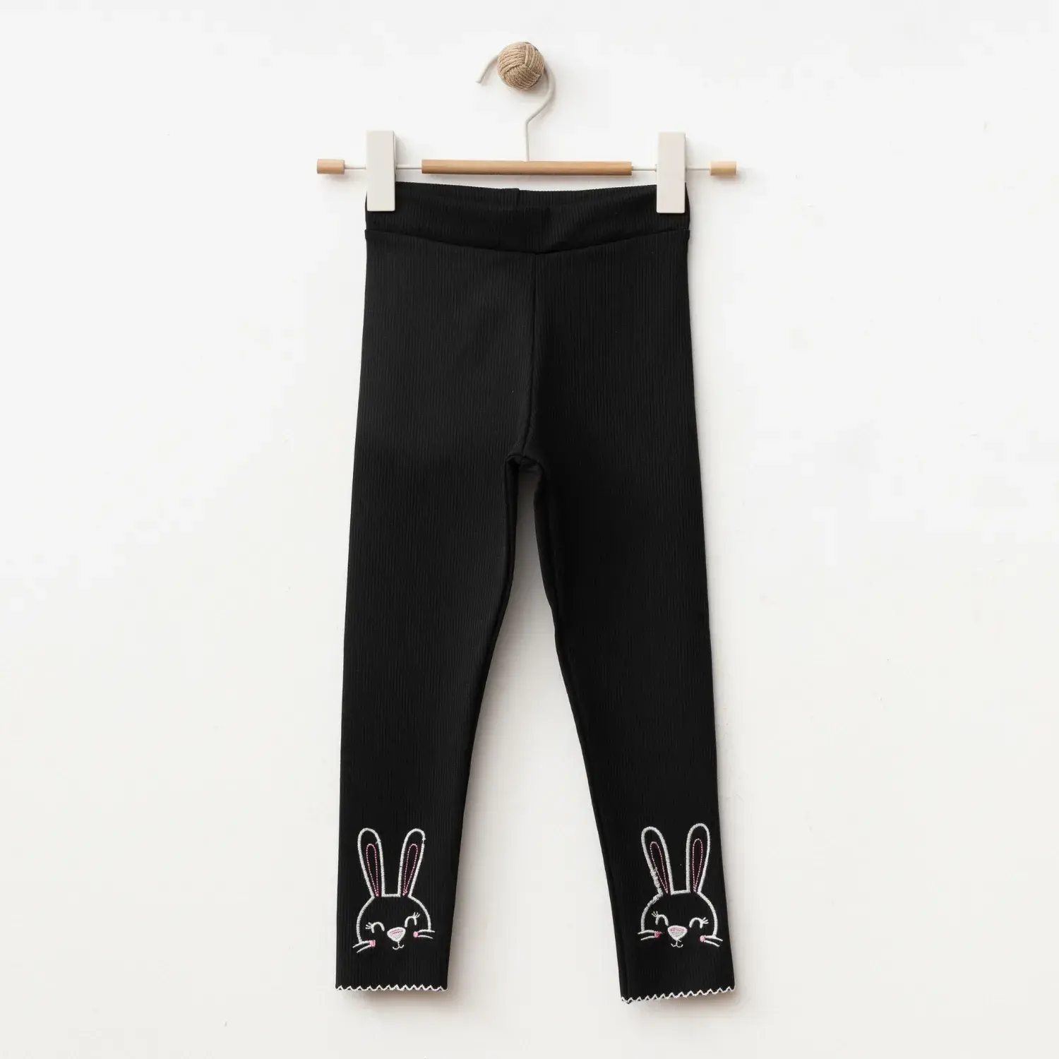 Winimo Tavşan Nakışlı Fitilli Kız Çocuk Tayt Siyah