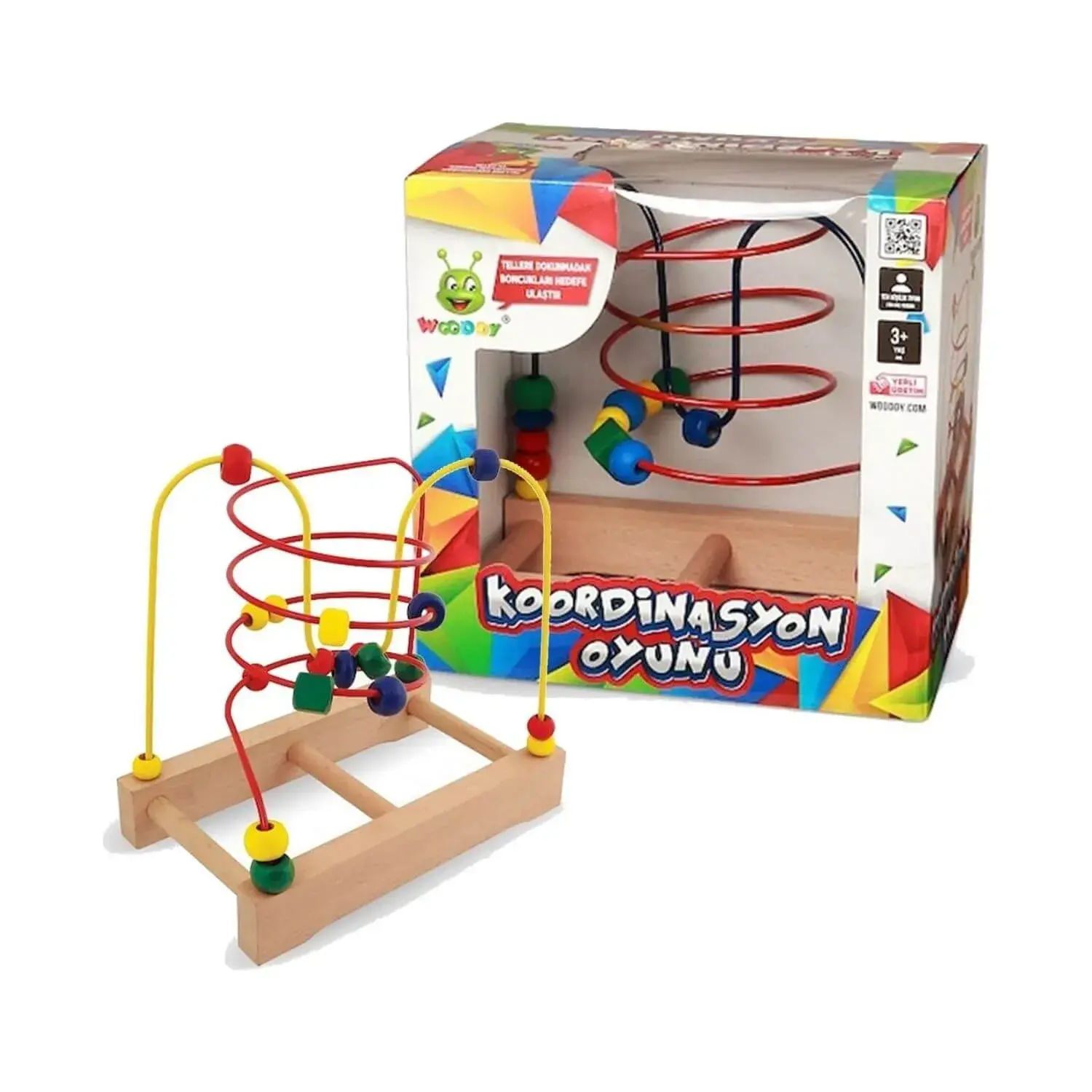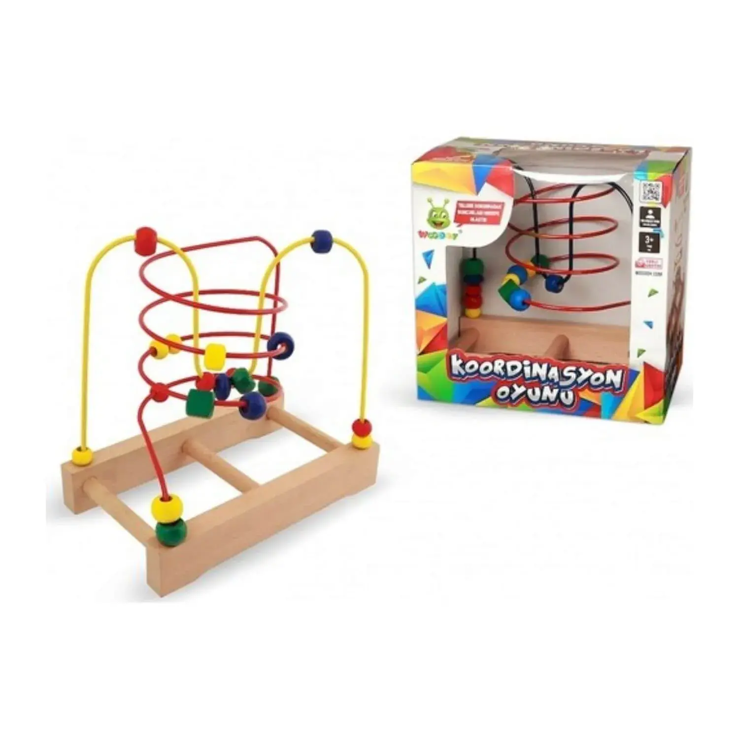19 adet ahşap boncuktan oluşan metal telli koordinasyon oyun seti; çocukların el becerilerinin gelişmesine yardımcı olur, algılama ve kavram yeteneğini geliştirir, organizasyon ve hayal güçlerinin gelişimine yardımcı olur.