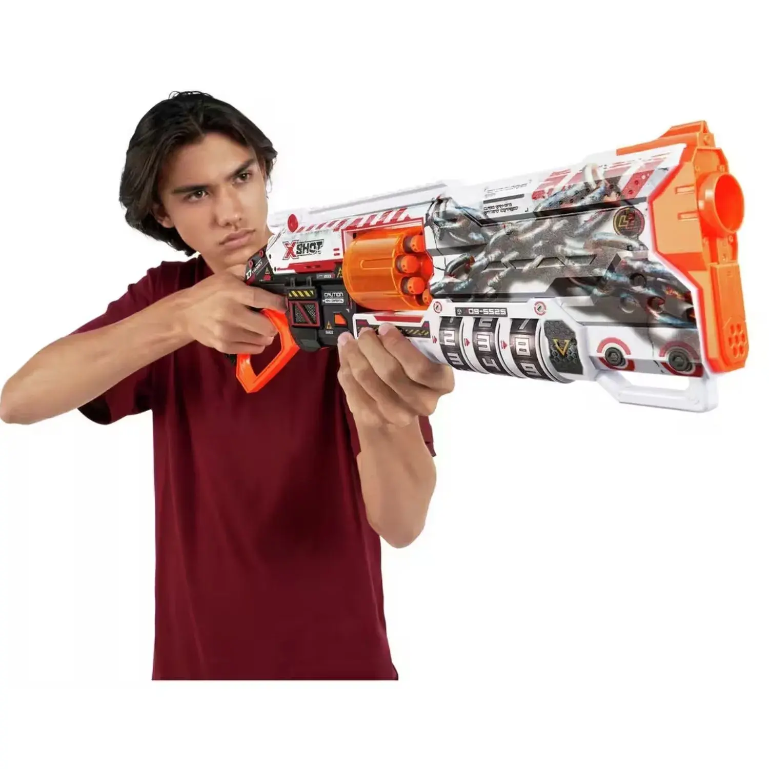 X-Shot Skins Lock Blaster gücü ellerinize veriyor! Sünger dart atan bu silah, tek başına geçireceğin vakitlere eğlence katarken aynı zamanda arkadaşlarınla bir araya gelip heyecanın tadını çıkarmak için en büyük yardımcın olacak! Silahını eline alabilir ve hedefleri tek seferde vurmaya çalışabilirsin. 16 mermi kapasitesi ve 30 metre uzaklıktaki hedefleri vurabilmesi sayesinde oyun eğlencen sen kazanana kadar bitmez.