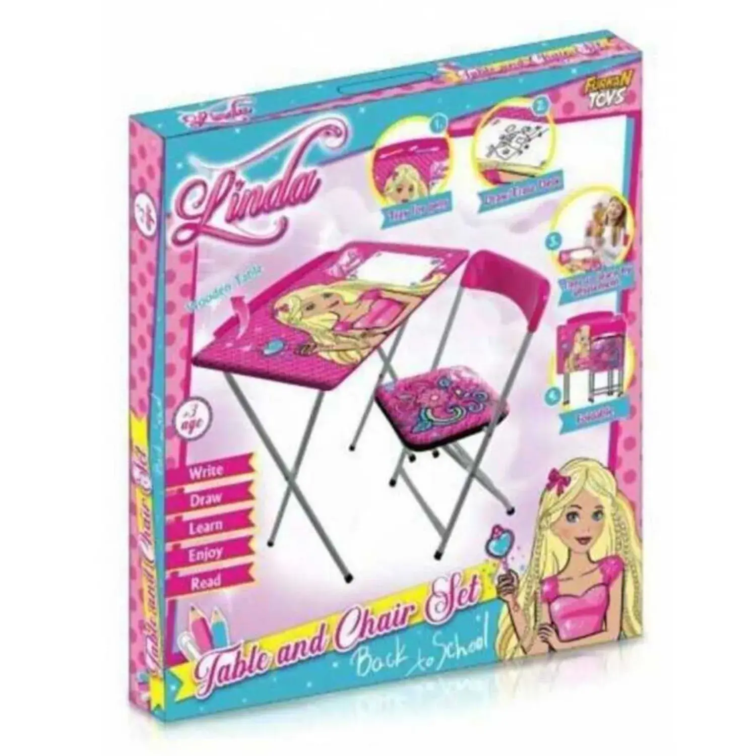 - Çalışma Masa Sandalye Seti Ürünümüz Linda baskılı, keyifli bir çocuk masasıdır. Çocuklarınız bu masada yemek yiyebilir, ders çalışabilir, resim yapabilir, oyun oynayabilir ve daha bir çok şey ! İsterseniz evde isterseniz bahçenizde rahatlıkla kullanabilirsiniz.